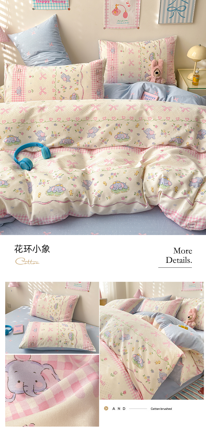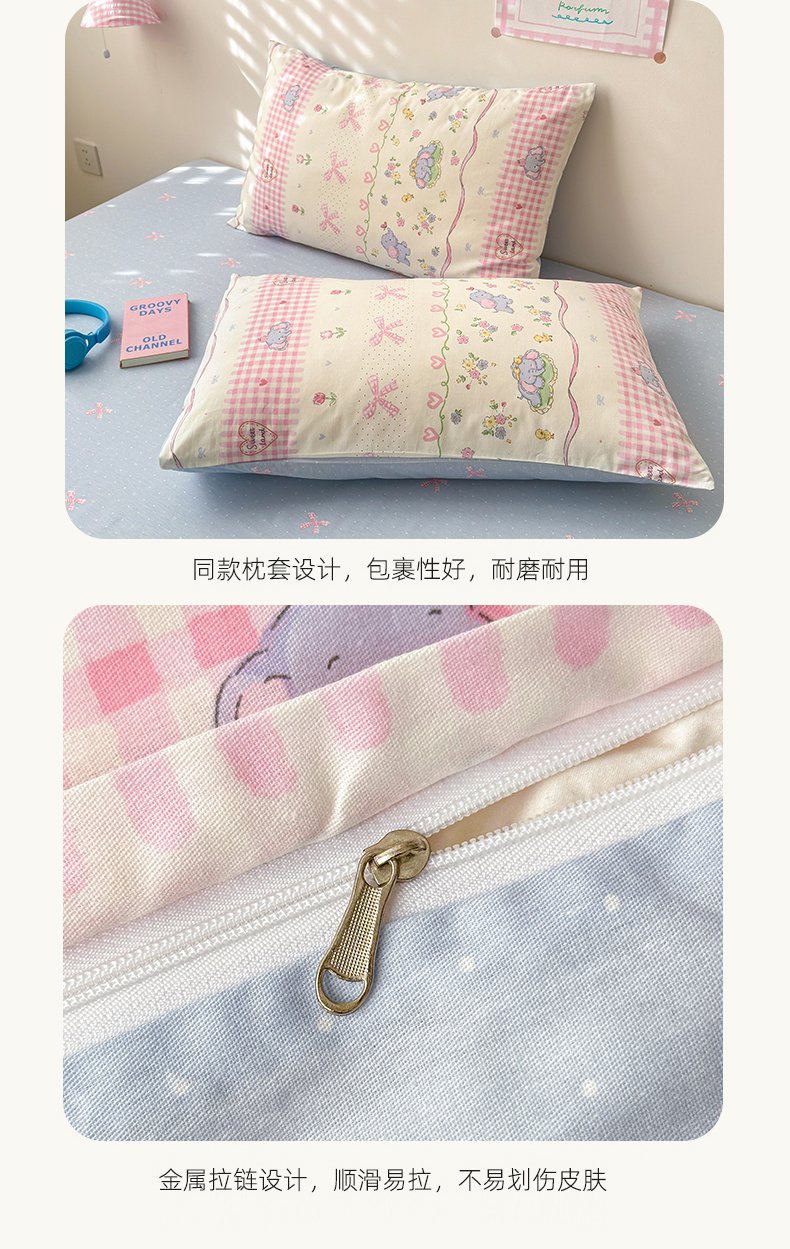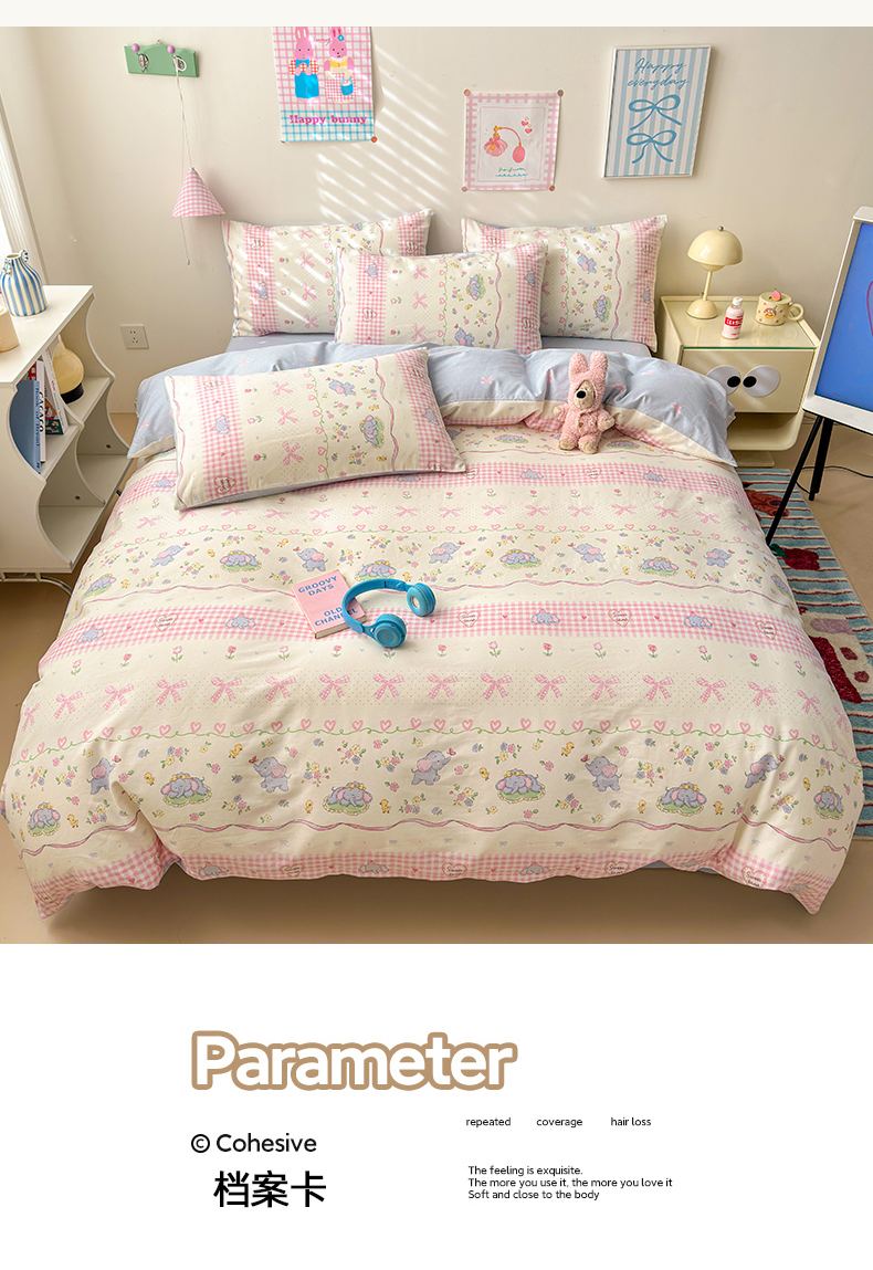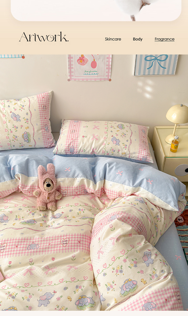 商品名称:曼之夏 2025新款全棉印花四件套 花环小象