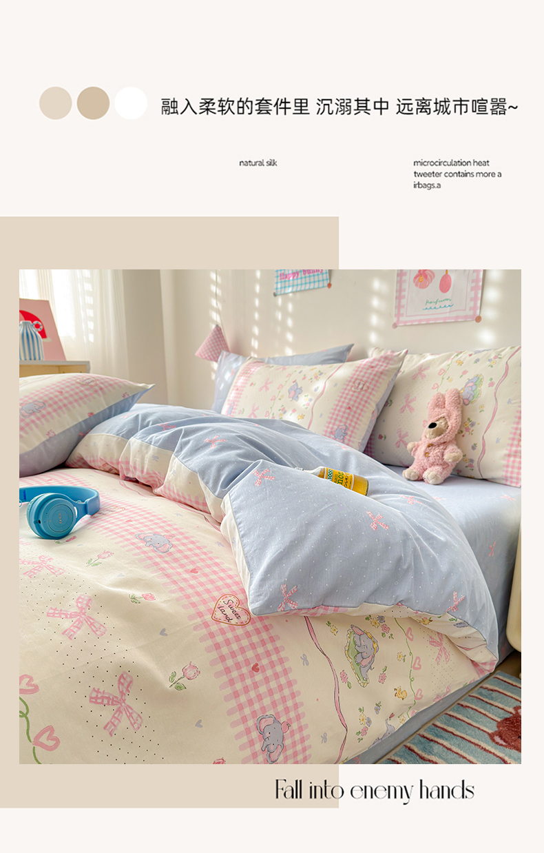 (总)曼之夏 2025新款原棉加厚磨毛印花四件套,比心,布鲁兔,春风十里,大都会,简兮,麦琪熊,麦语-灰,梦游记,眠时光,奇想,轻奢生活,塔维尔(米),甜心小熊,威斯丁,闲趣时光,意林(兰)
