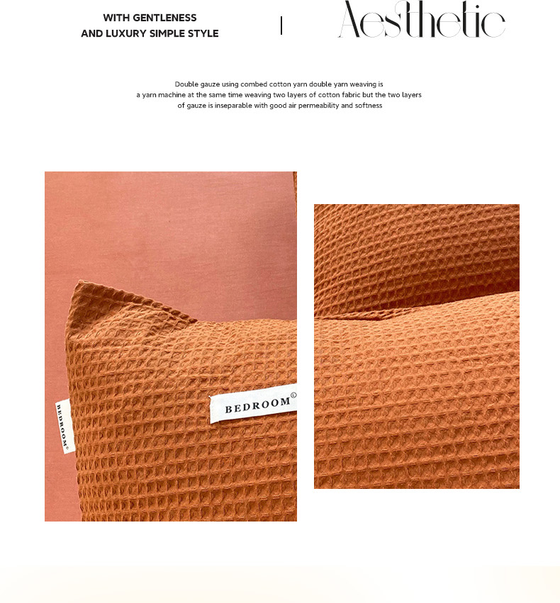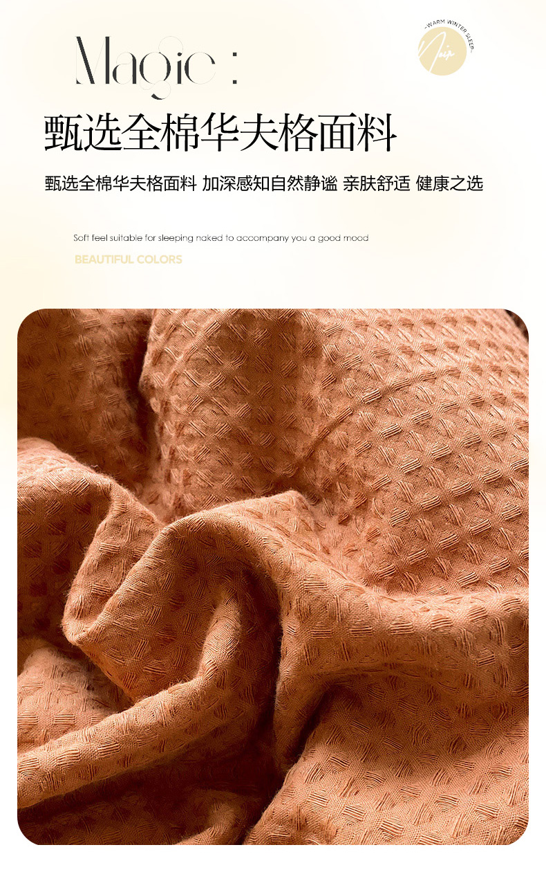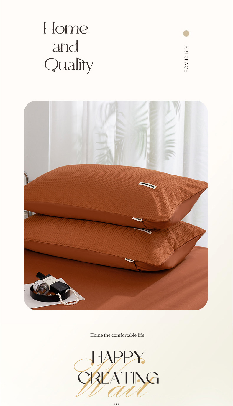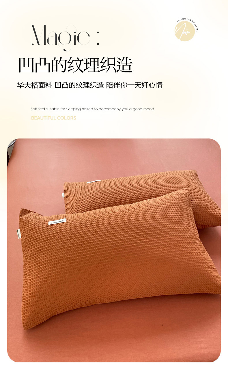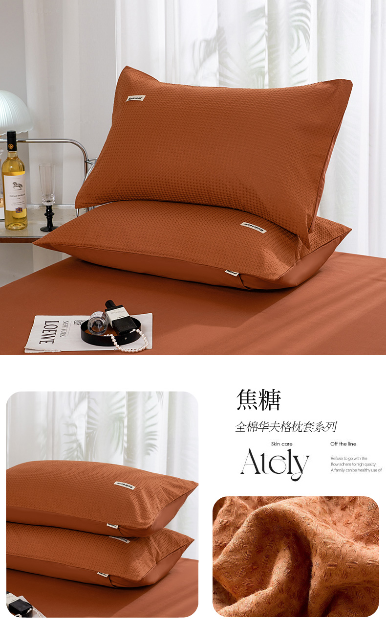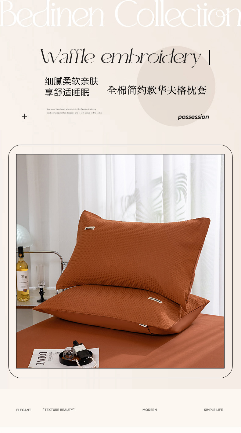 商品名称:眠博士 2025新款简约时尚全棉华夫格枕套 简约款-焦糖