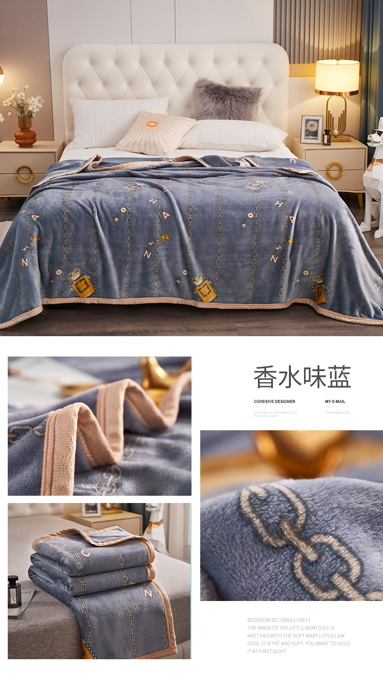 2025新款云貂绒清仓特价毛毯 香水味蓝