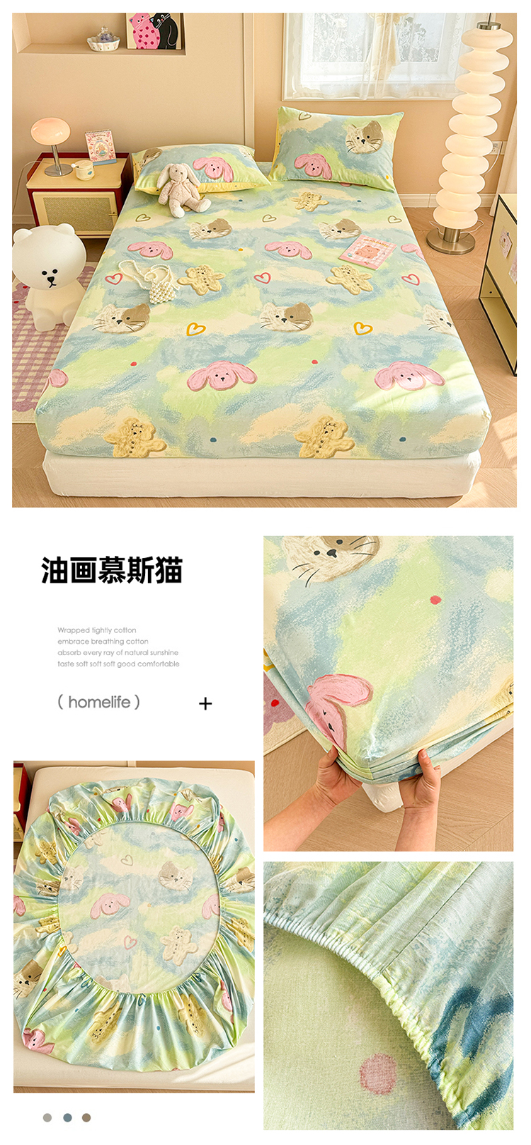 • 91家纺网 家纺一手货源 找家纺 呗旺鹿 2025新款全棉13372床笠 油画慕斯猫
