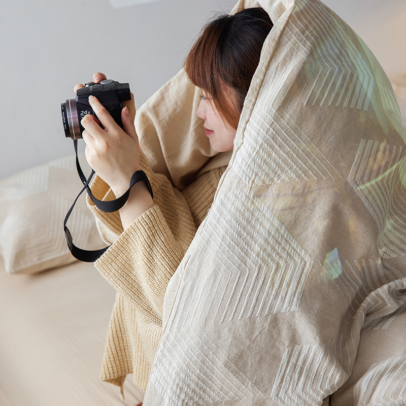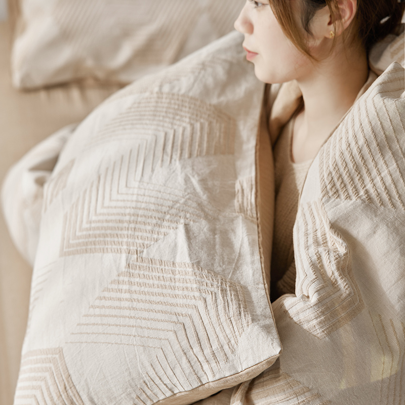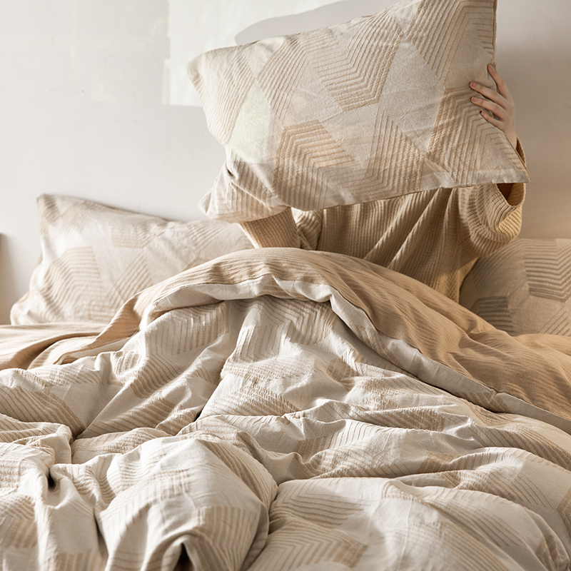 (总)简家居 2025新款亲肤舒适棉麻床盖三件套,棉麻提花