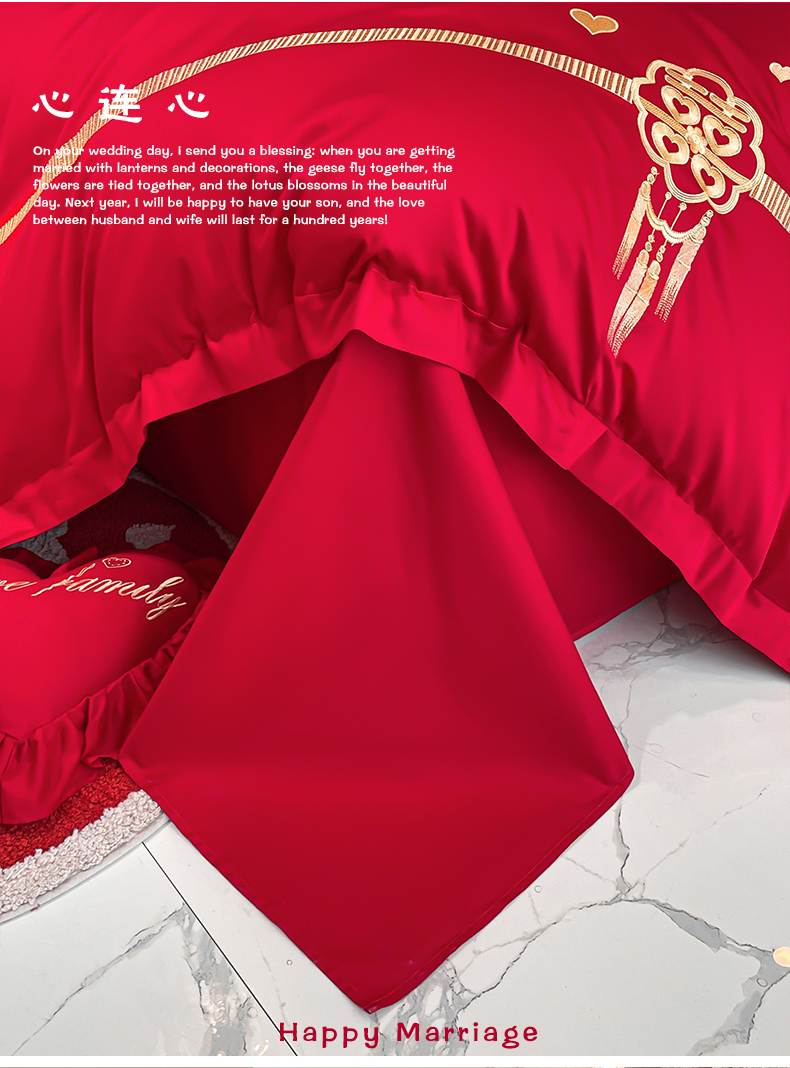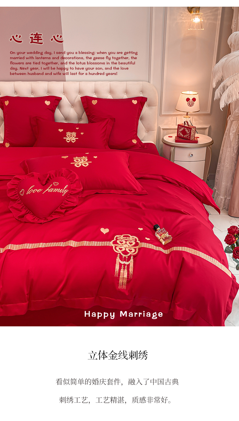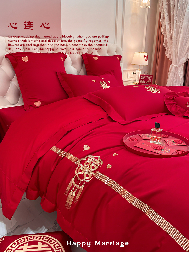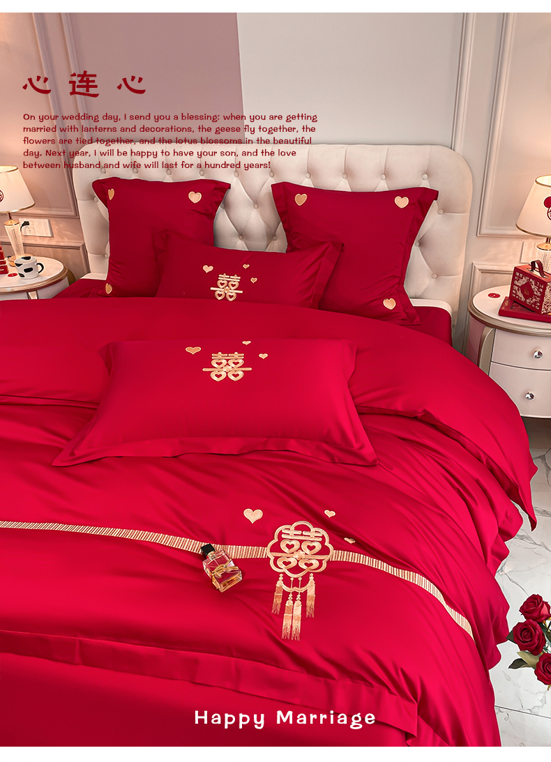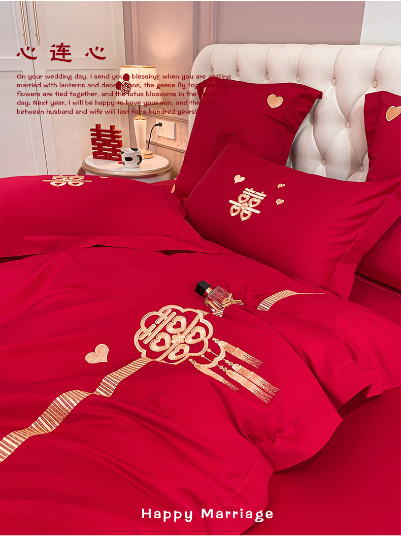 当前位置: 91家纺网 > 商品网购 > 床品套件 > 四件套 > 婚庆四件套 > 东方合美(原:皇家传奇) 2023新款亲肤舒适时尚婚庆四件套系列 心连心
