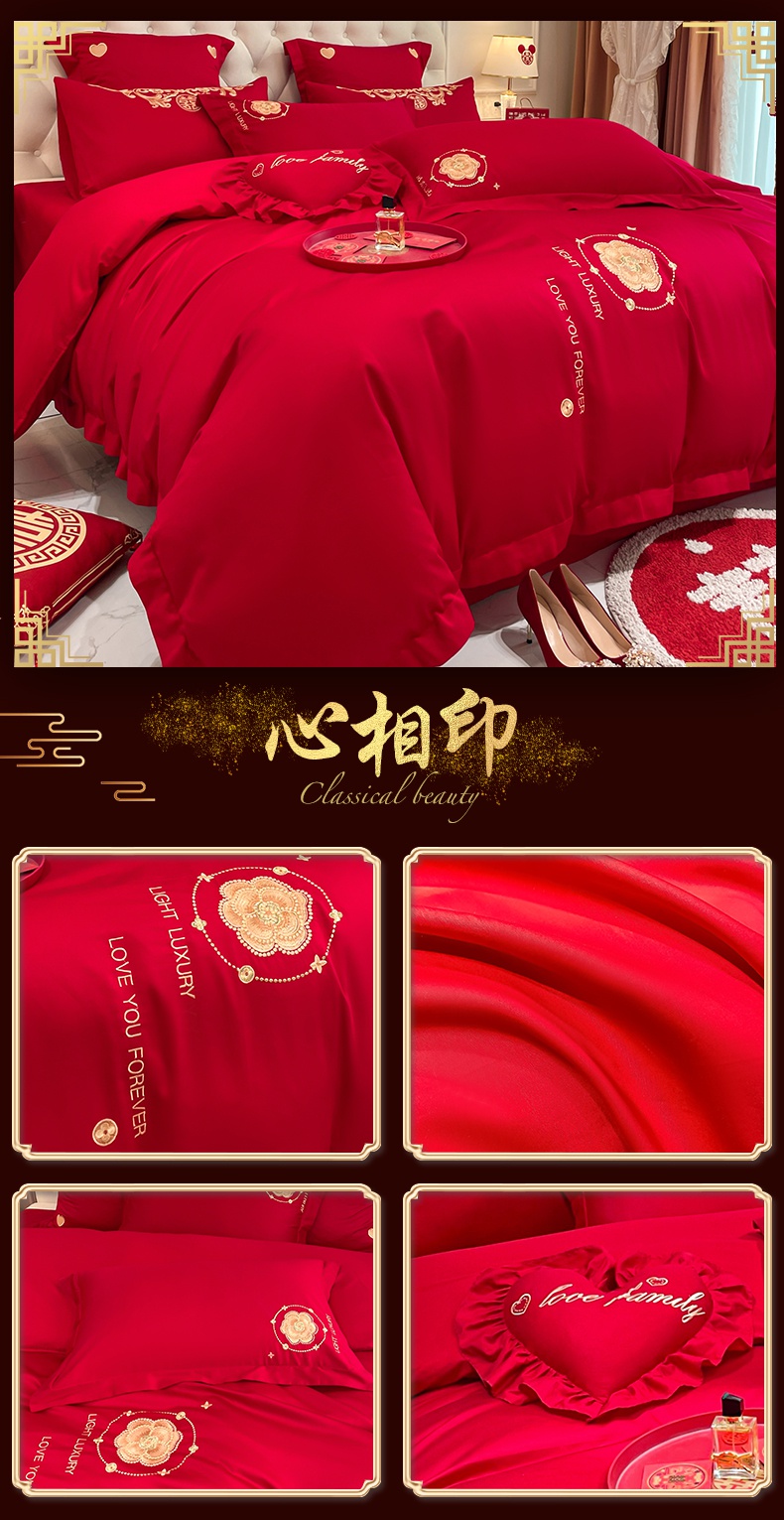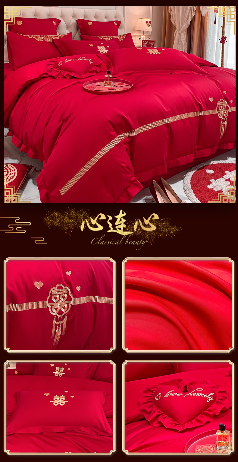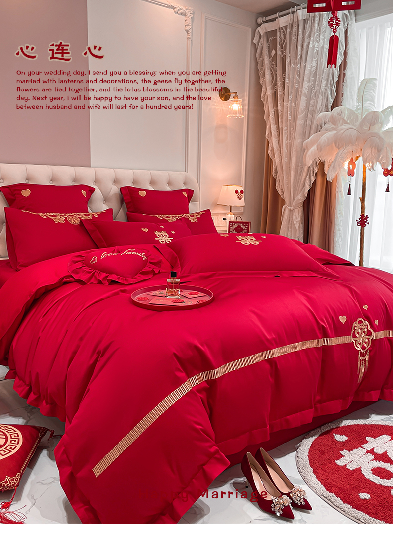 当前位置: 91家纺网 > 商品网购 > 床品套件 > 四件套 > 婚庆四件套 > 东方合美(原:皇家传奇) 2023新款亲肤舒适时尚婚庆四件套系列 心连心