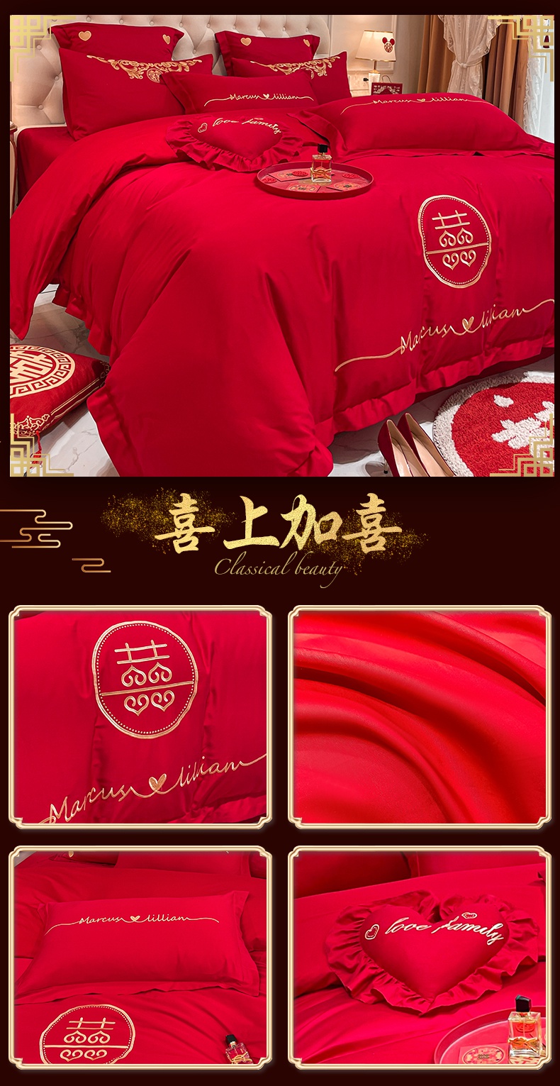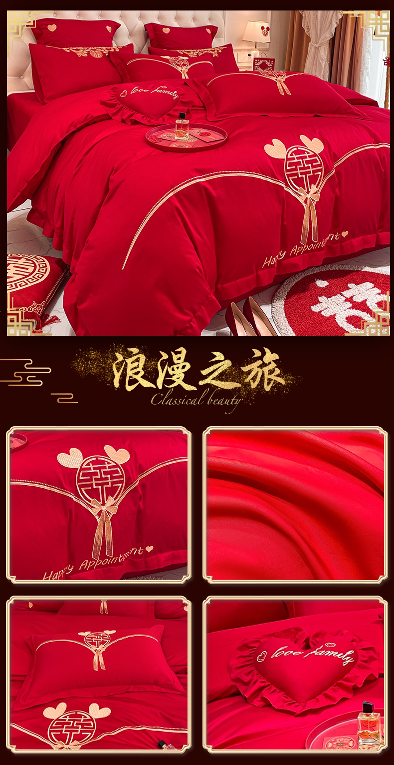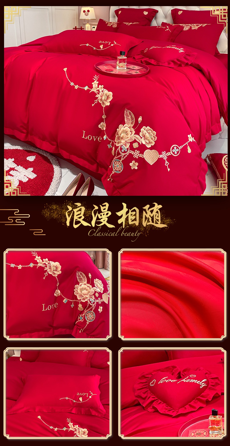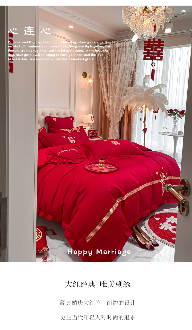 当前位置: 91家纺网 > 商品网购 > 床品套件 > 四件套 > 婚庆四件套 > 东方合美(原:皇家传奇) 2023新款亲肤舒适时尚婚庆四件套系列 心连心