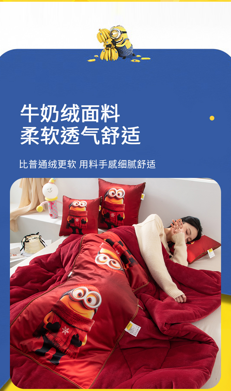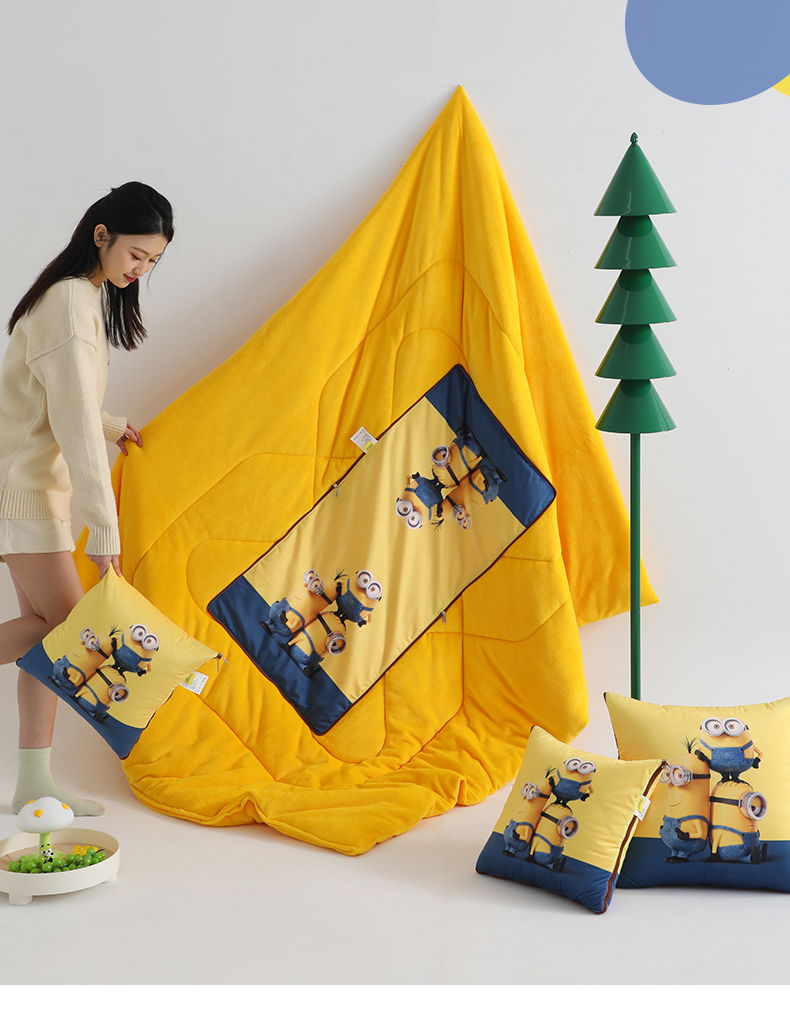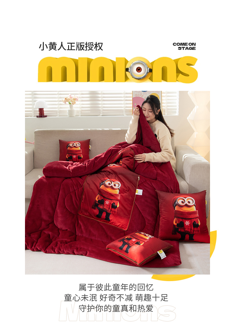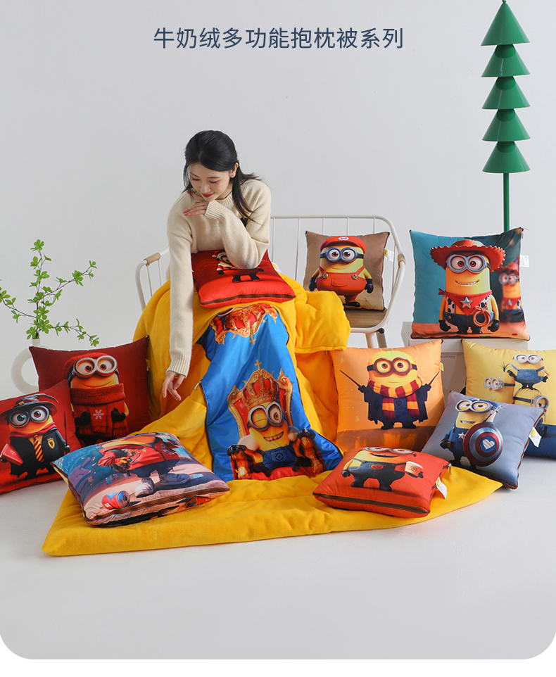 宝马家纺(原梦童画) 2025新款小黄人牛奶绒数码印花抱枕被 黄人三兄弟