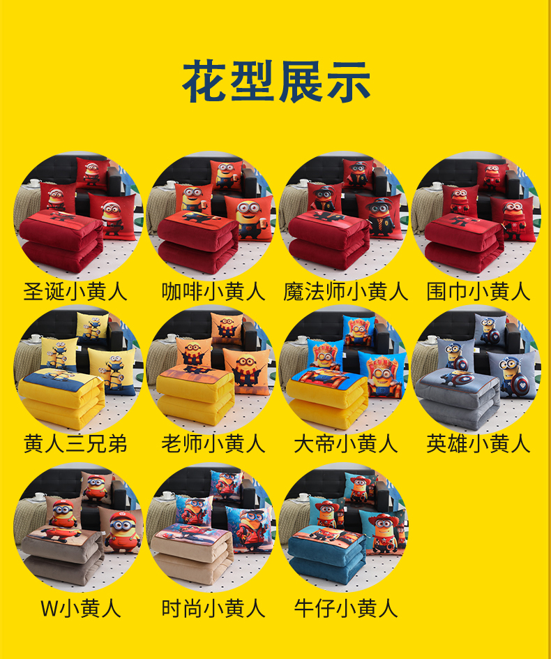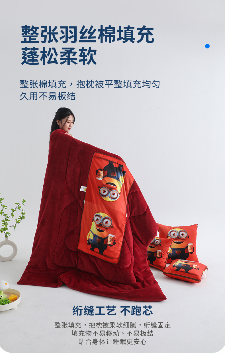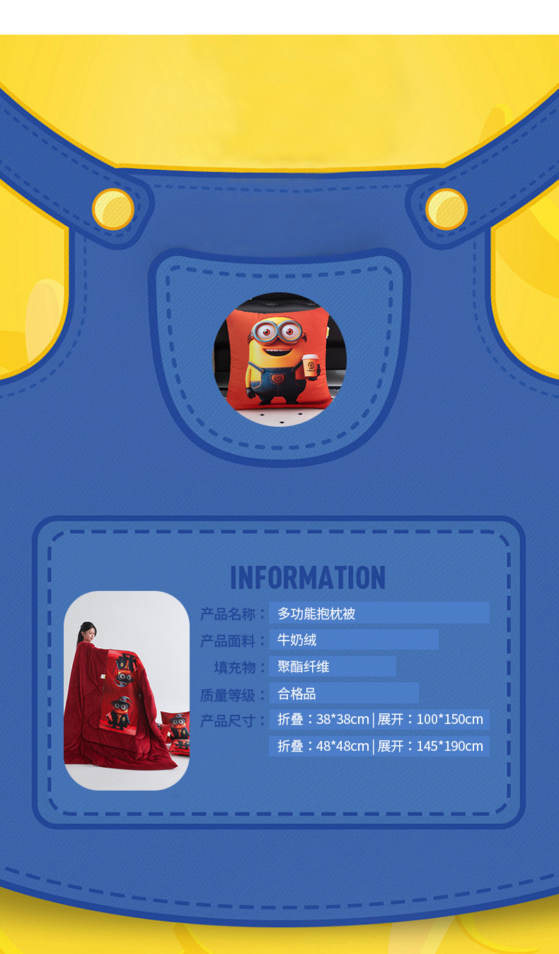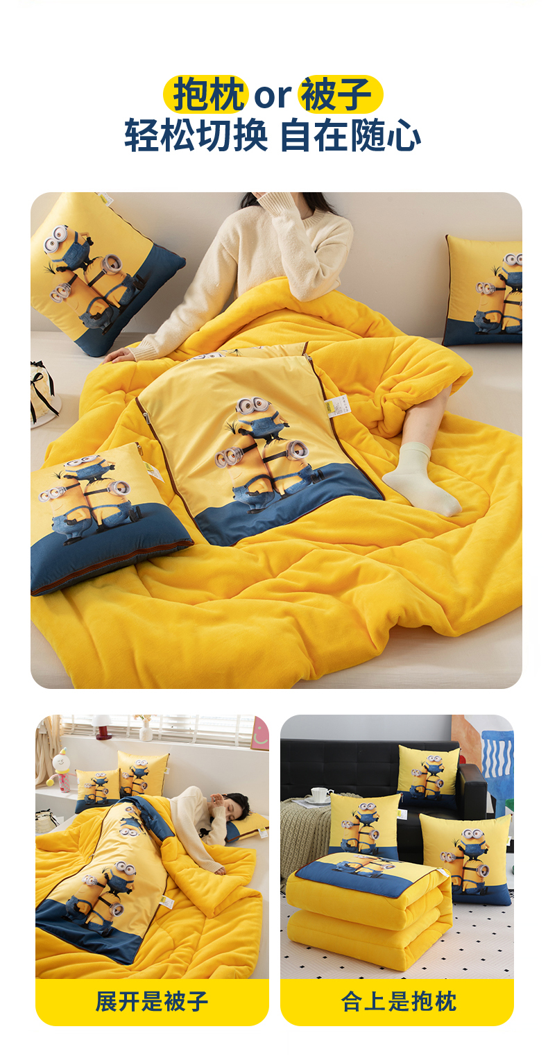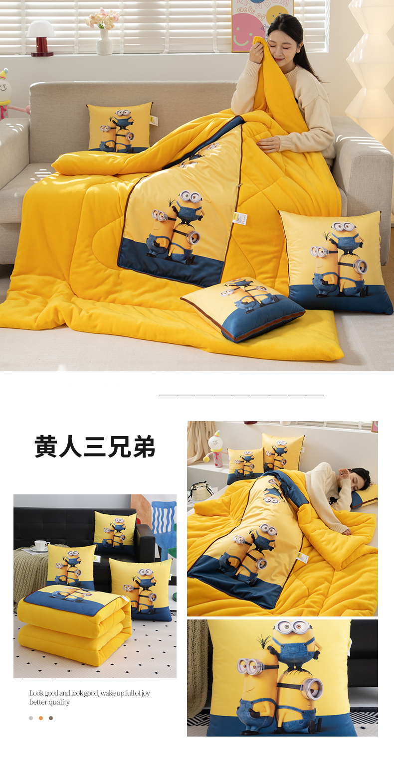 商品名称:宝马家纺(原梦童画) 2025新款小黄人牛奶绒数码印花抱枕被 黄人三兄弟