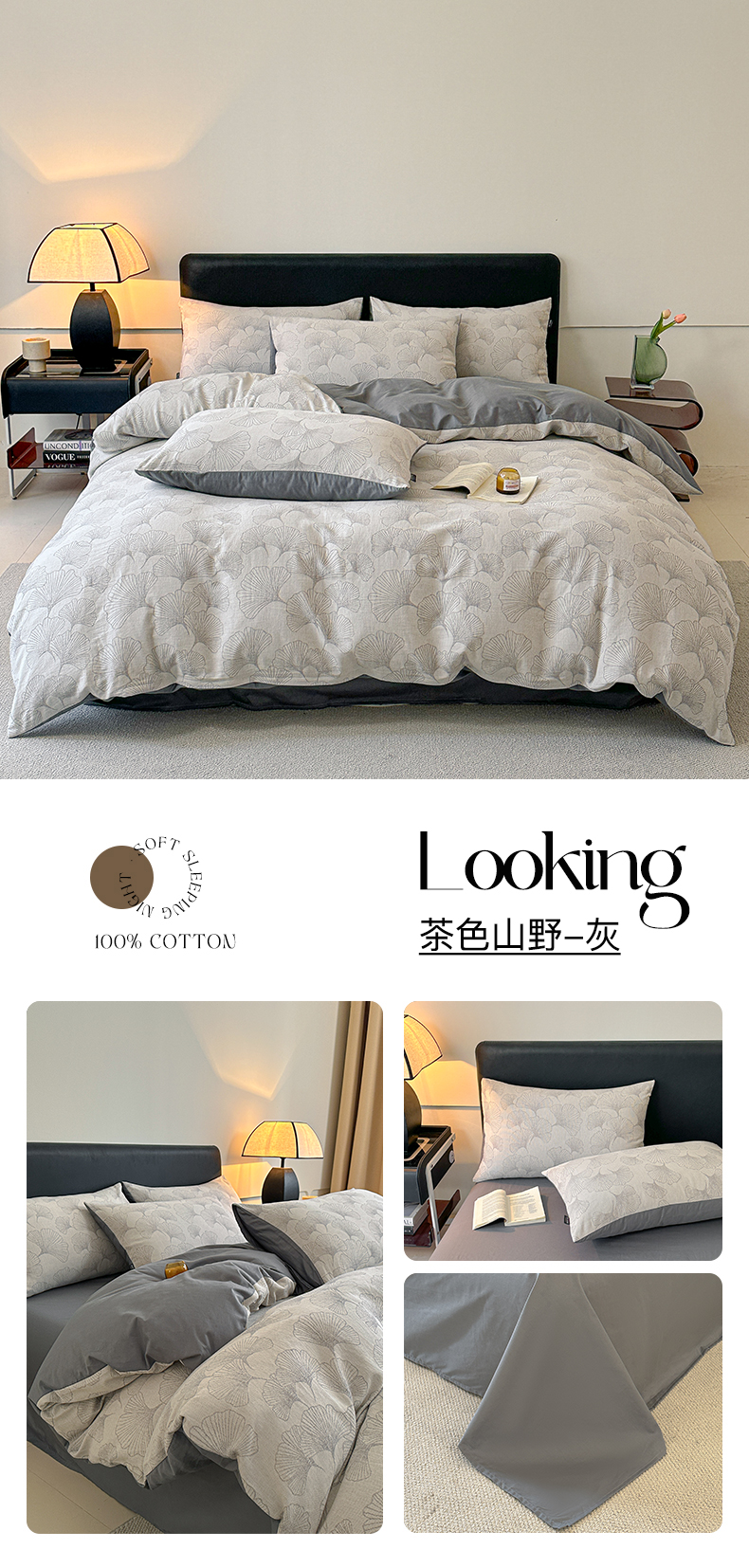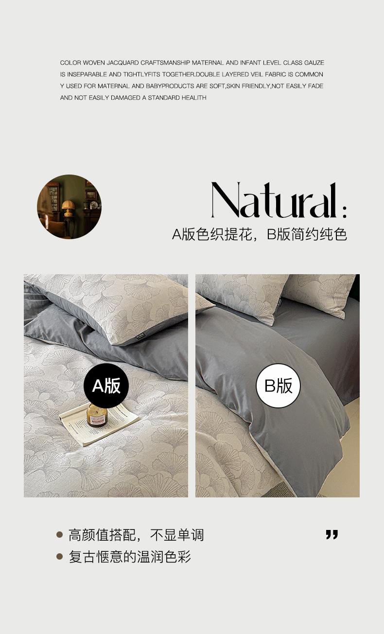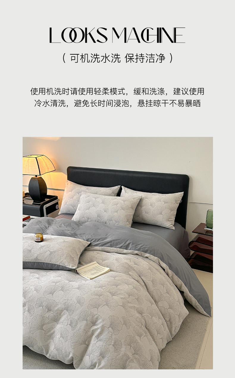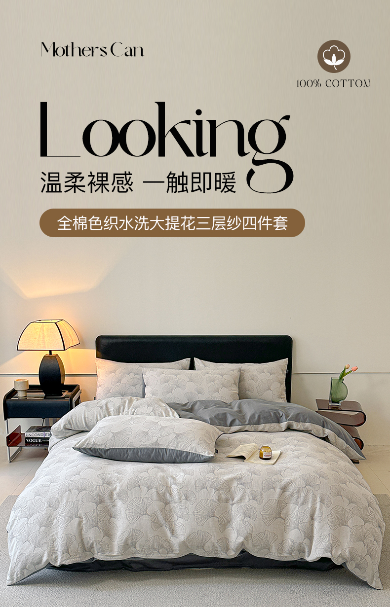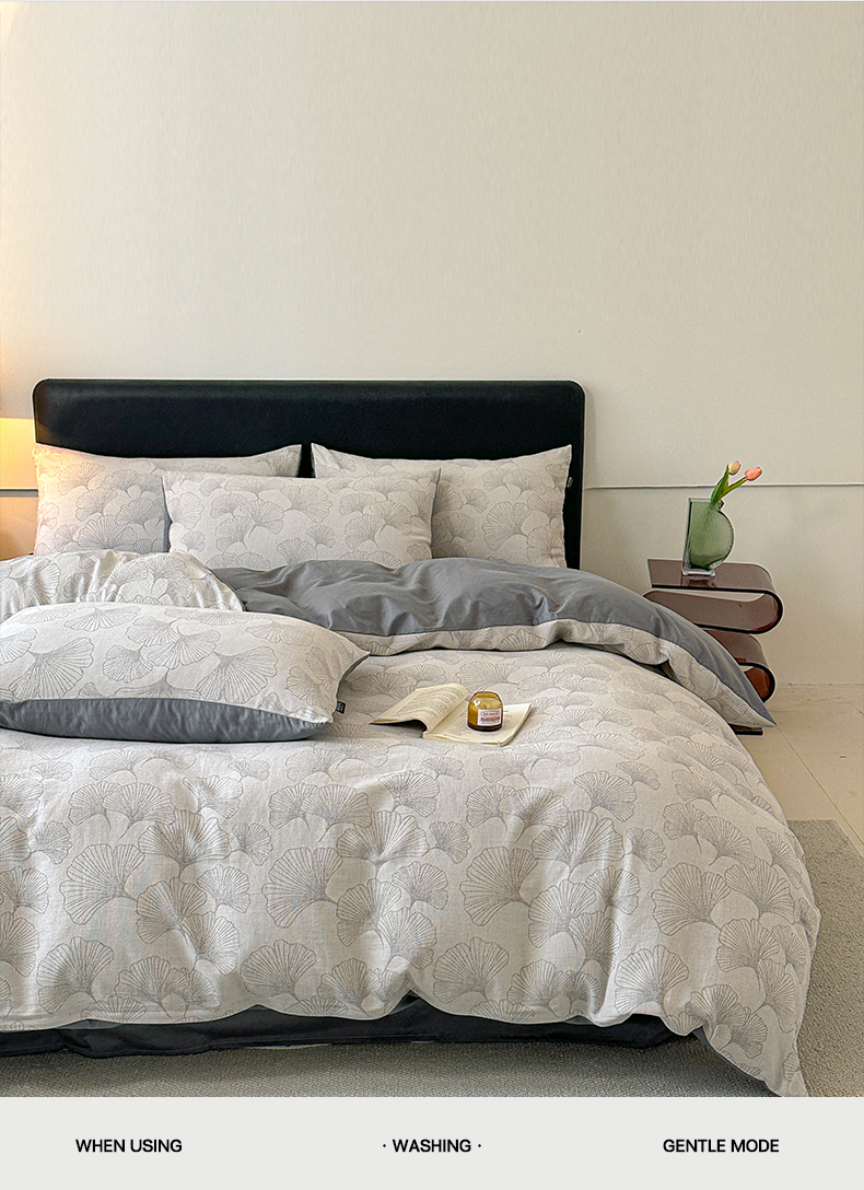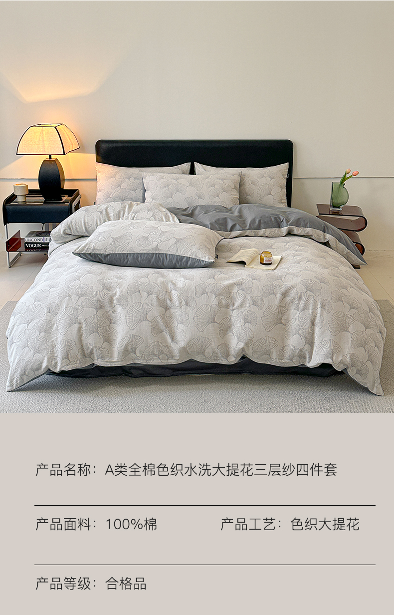 商品名称:格里芬家纺 2025新款全棉色织水洗三层纱提花纯棉四件套 茶色山野-灰