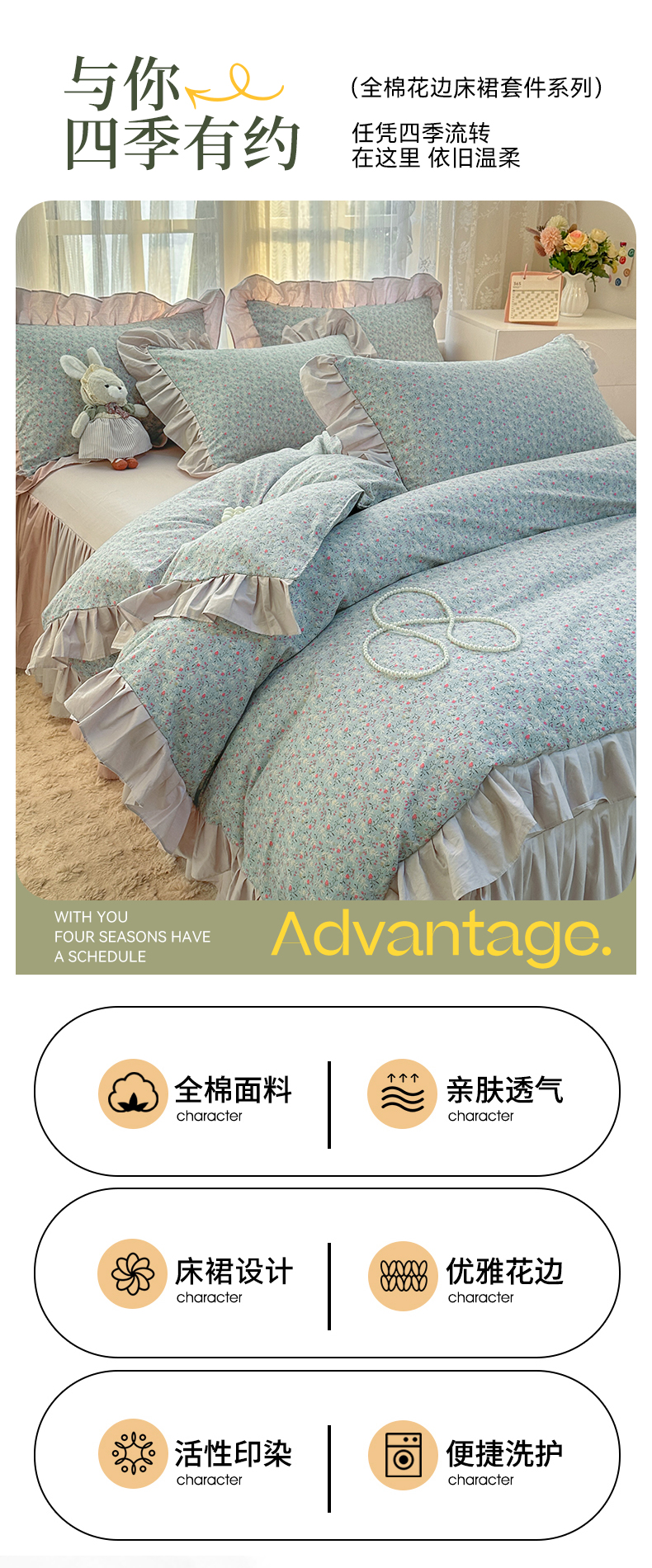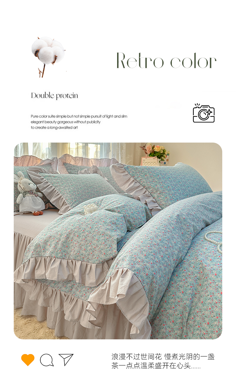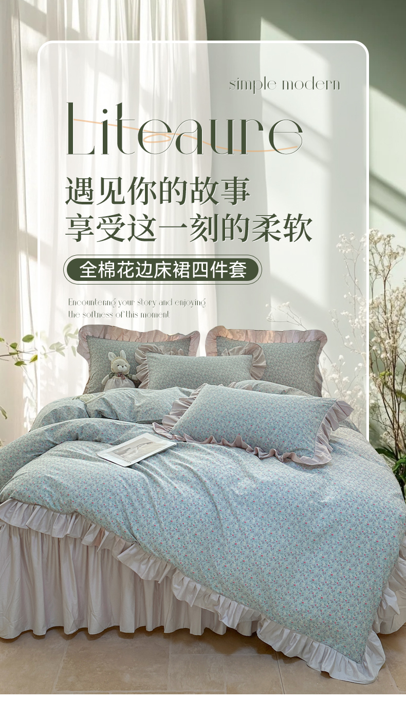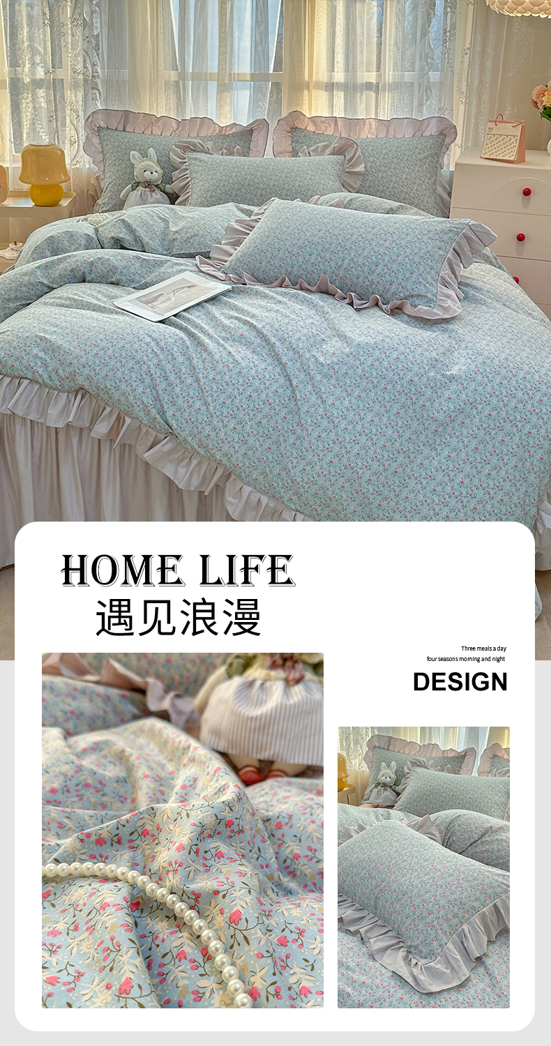 当前位置: 91家纺网 > 商品网购 > 床品套件 > 四件套 > 全棉普通四件套 > 忘忧草 2025新款全棉小清新床裙四件套 遇见浪漫