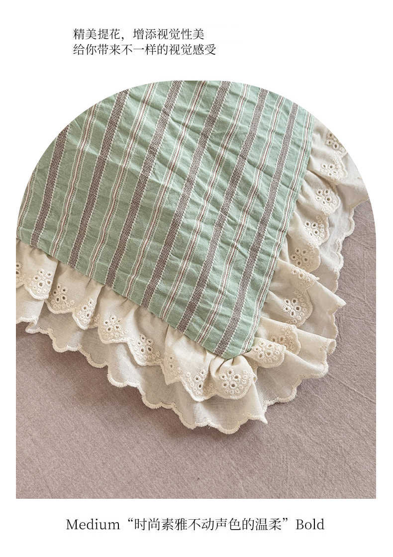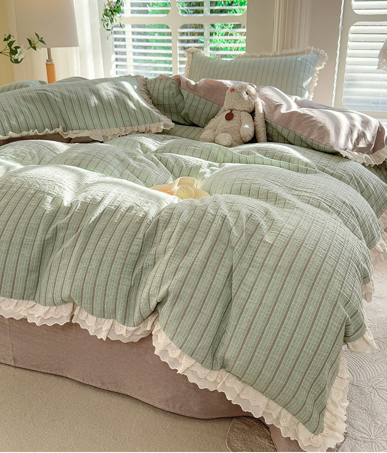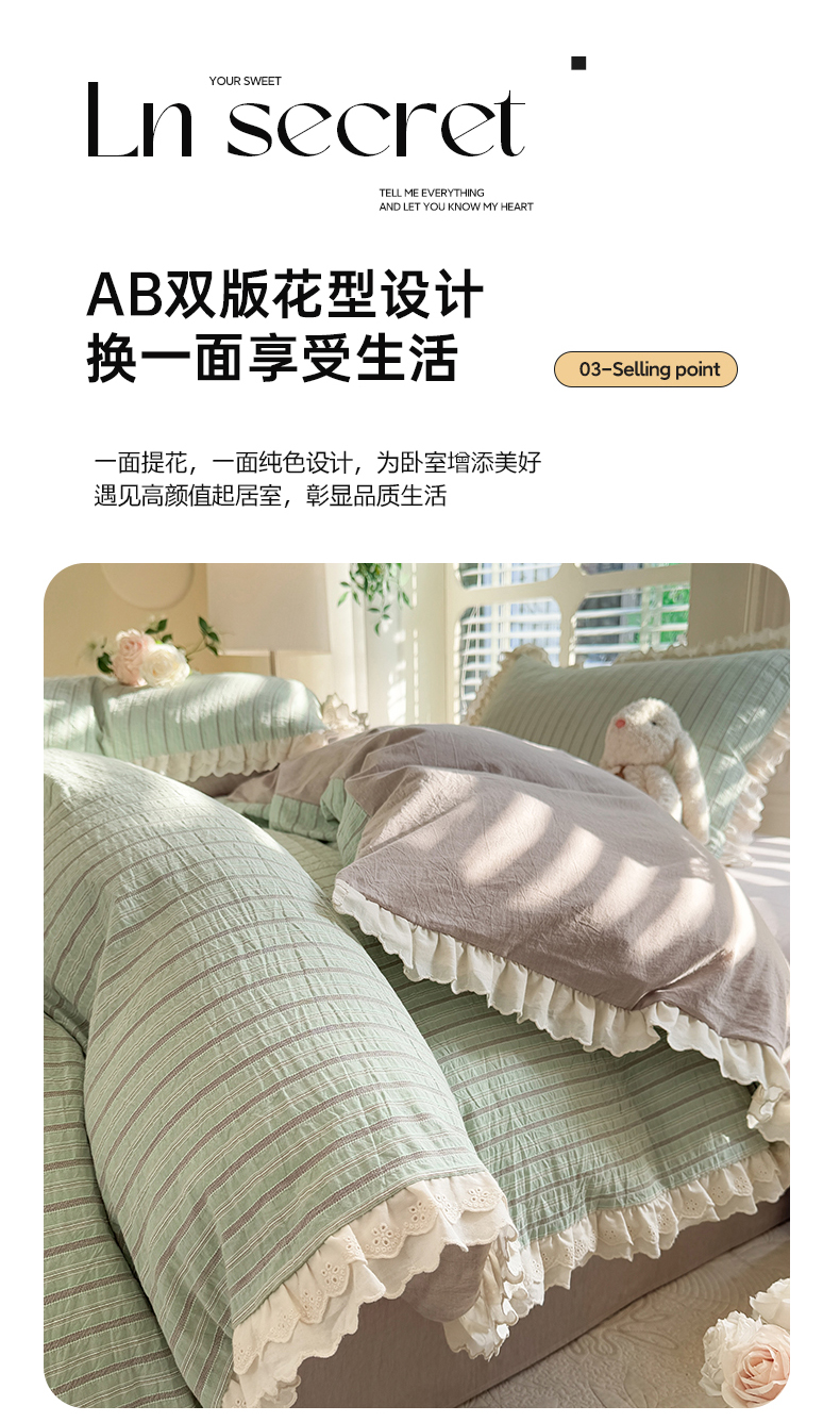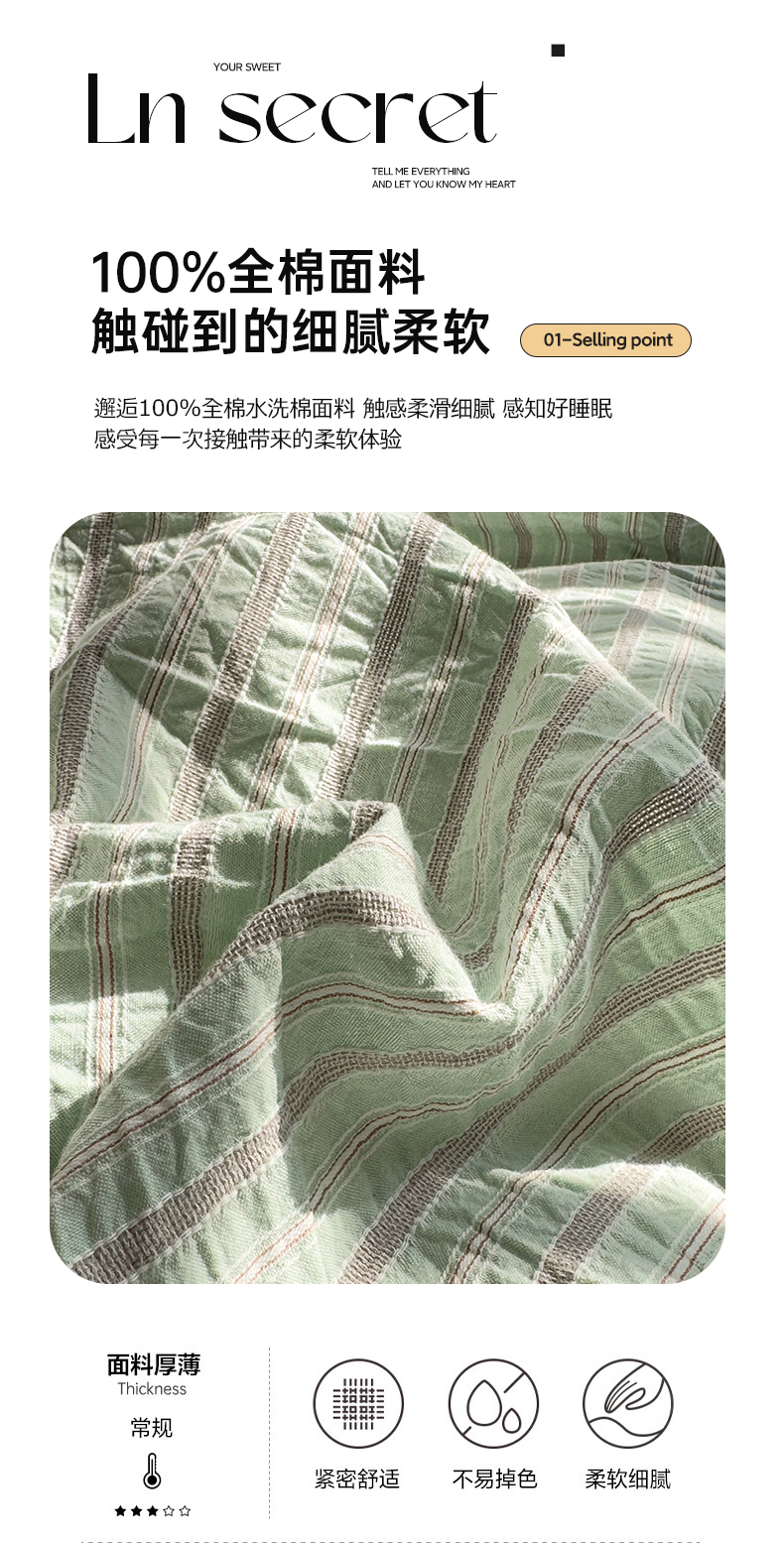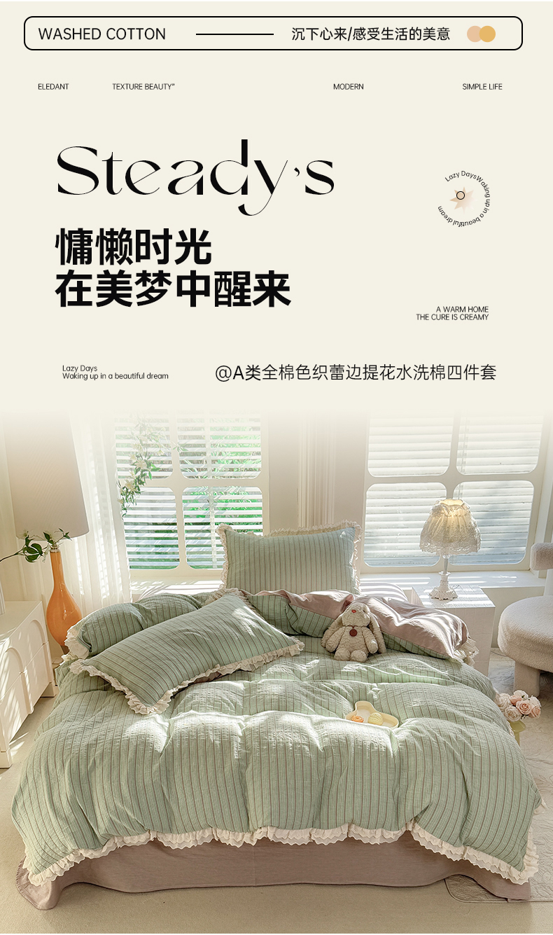 商品名称:棉小二 2025新款全棉色织花边提花水洗棉四件套-麦香 麦香-绿色