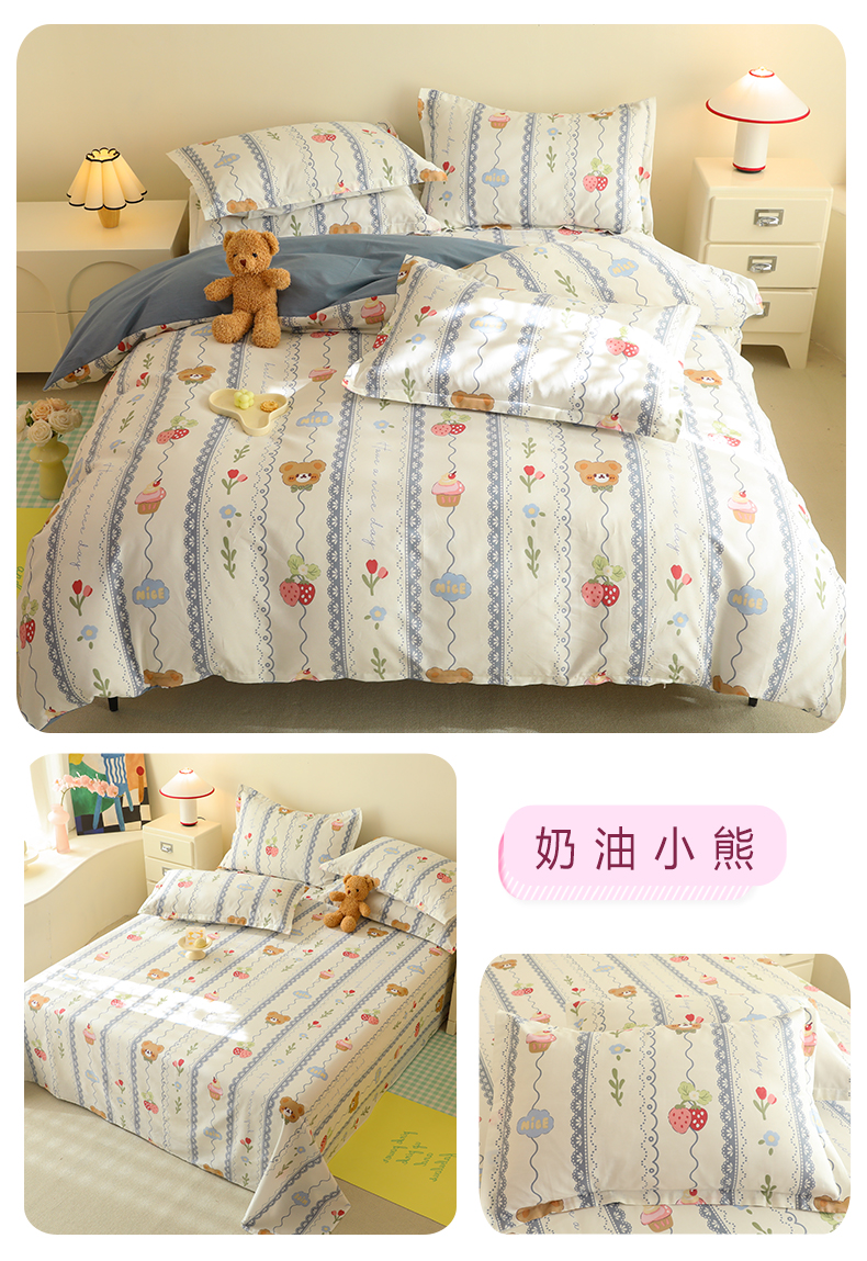八十八家纺 2025新款全棉12868床单款四件套奶油小熊