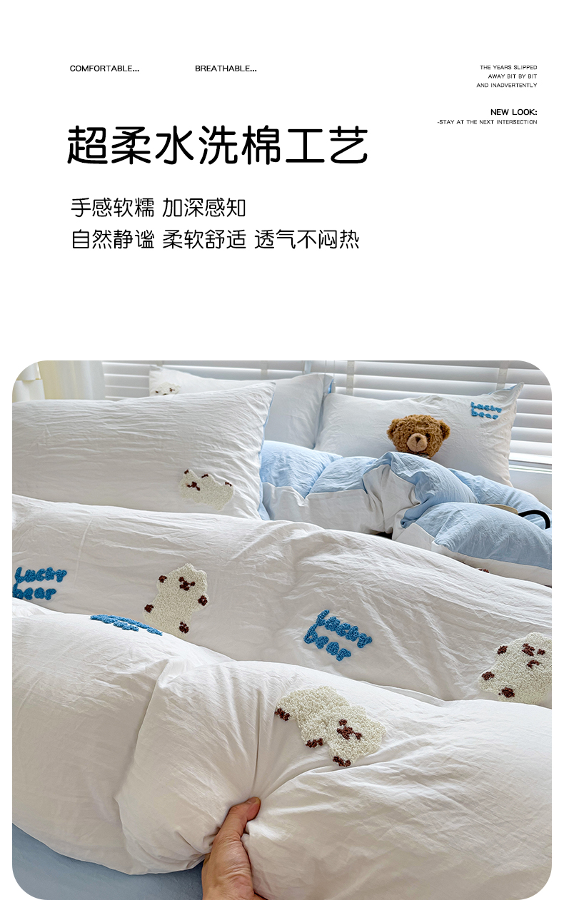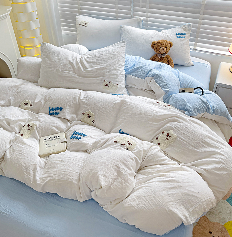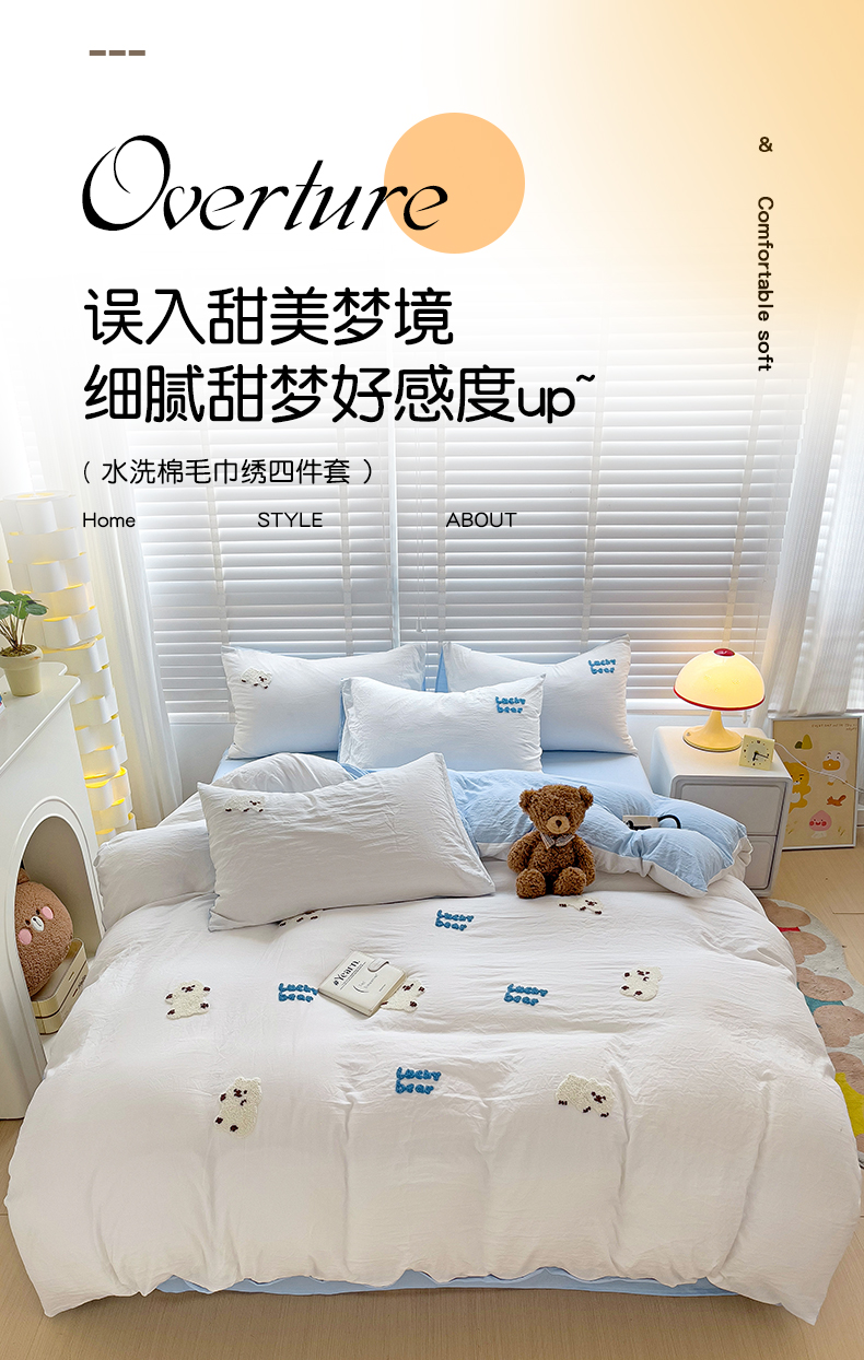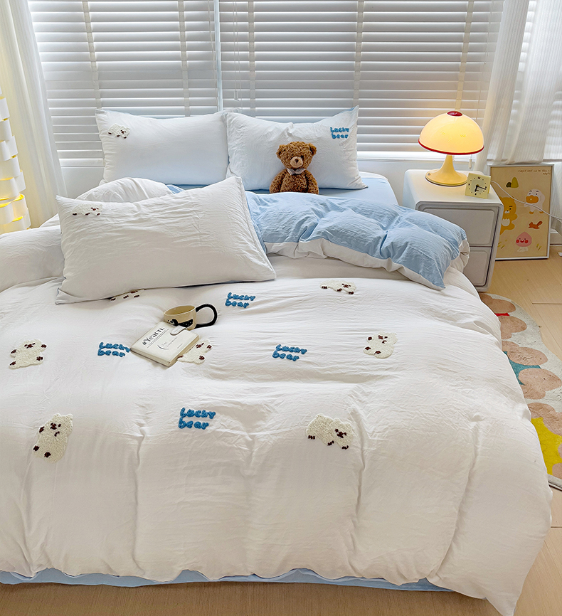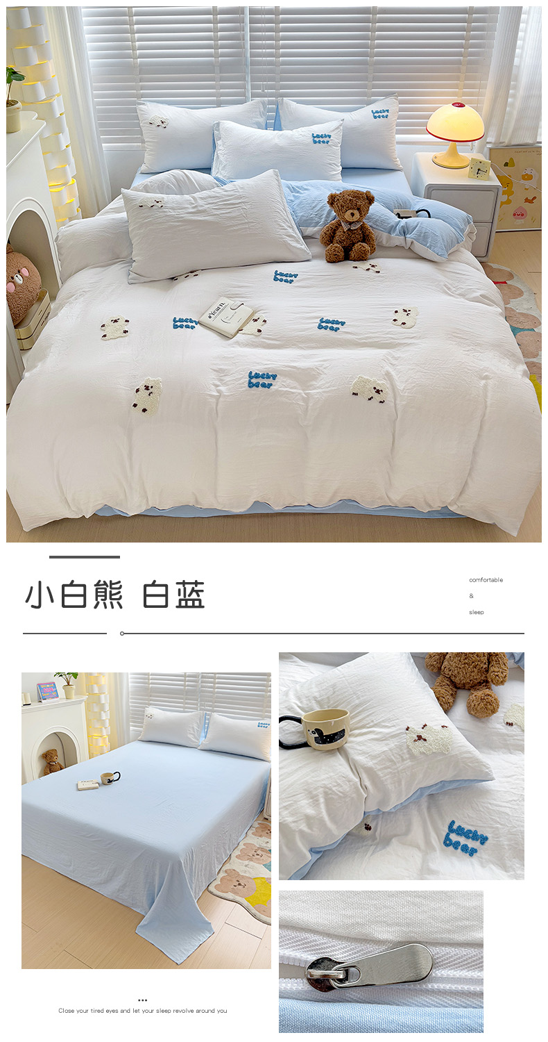 当前位置: 91家纺网 > 商品网购 > 床品套件 > 四件套 > 毛巾绣四件套 > 韩巢家纺 2025新款超柔水洗棉小白熊毛巾绣四件套-(提供卖家秀) 小白熊白蓝