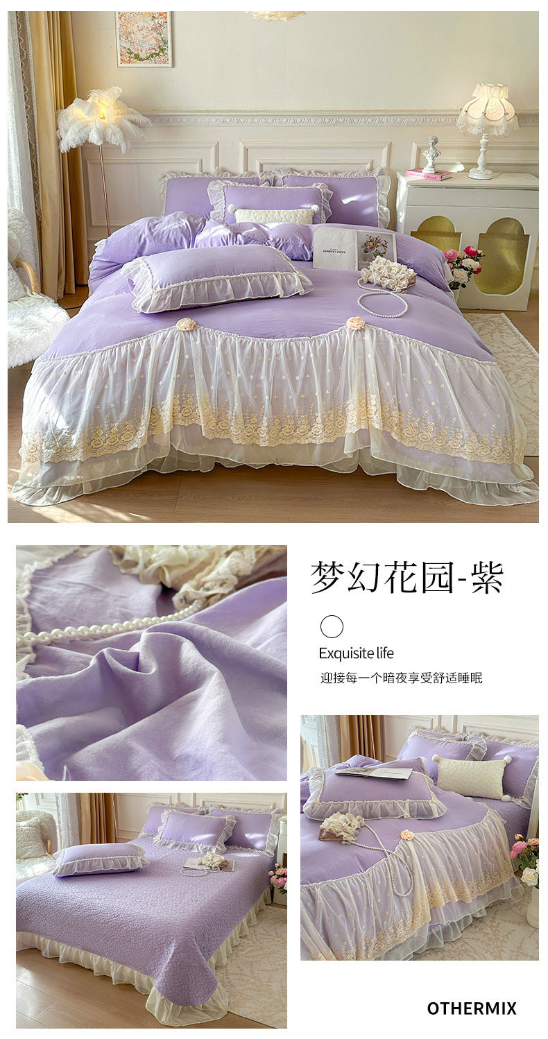 臻工厂2025 法式高端床盖水洗棉四件套 梦幻花园-紫