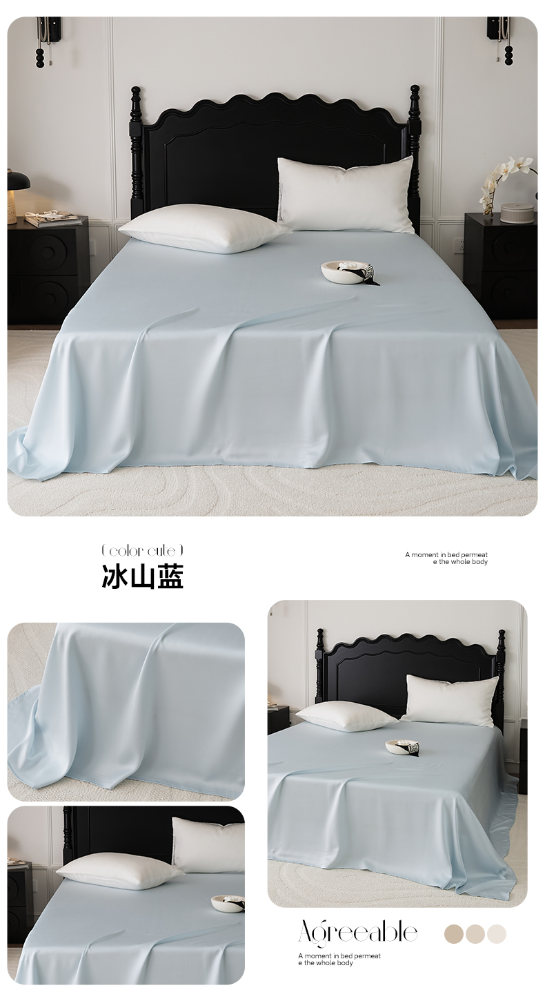 • 91家纺网 家纺一手货源 找家纺 EH家居 2025春夏天丝纯色单床单 冰山蓝