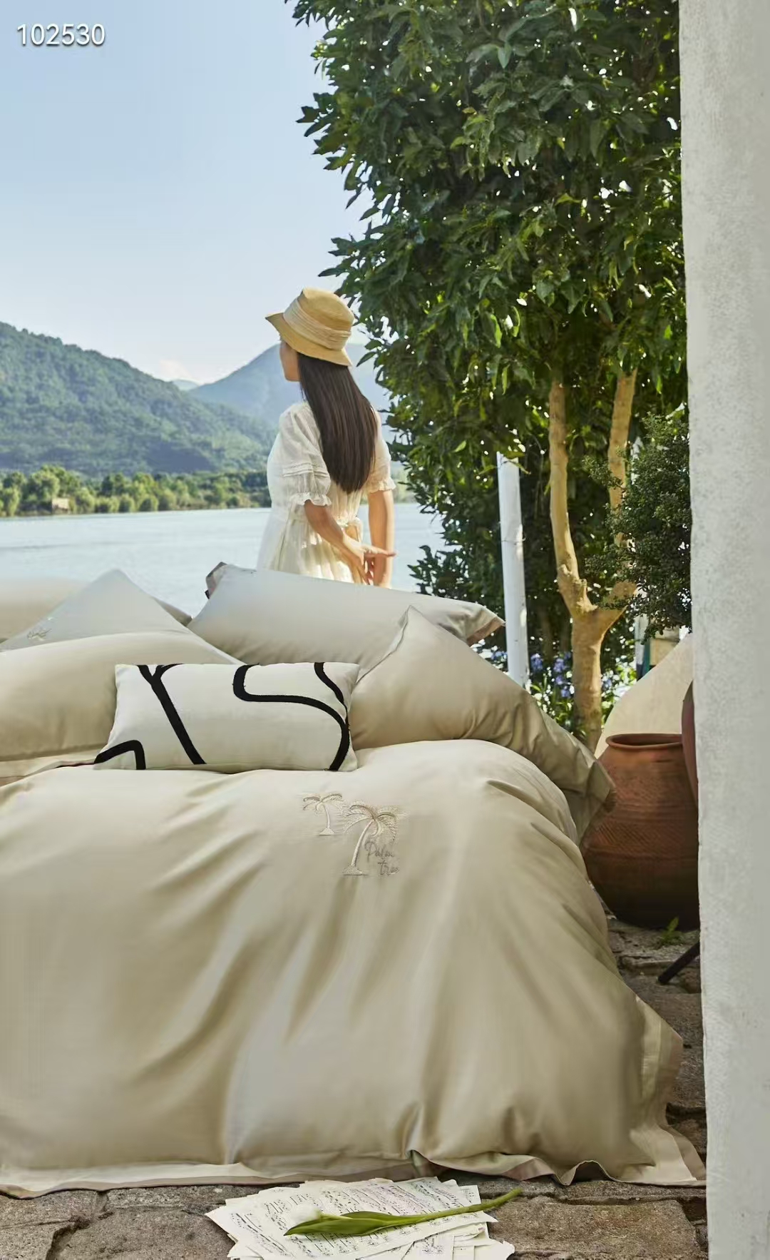 商品名称:玖玖爱家纺 2025新款120支奢柔阿瓦提长绒棉四件套-椰树拿铁 椰树拿铁绒绿