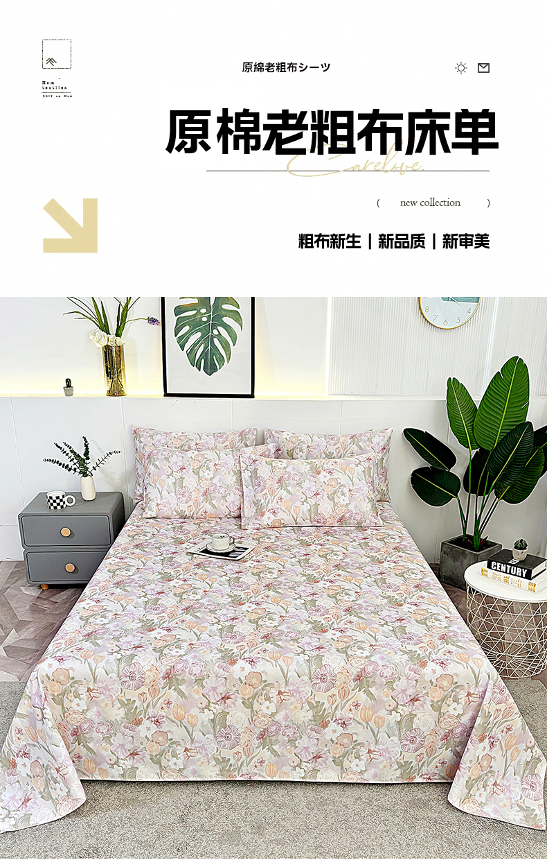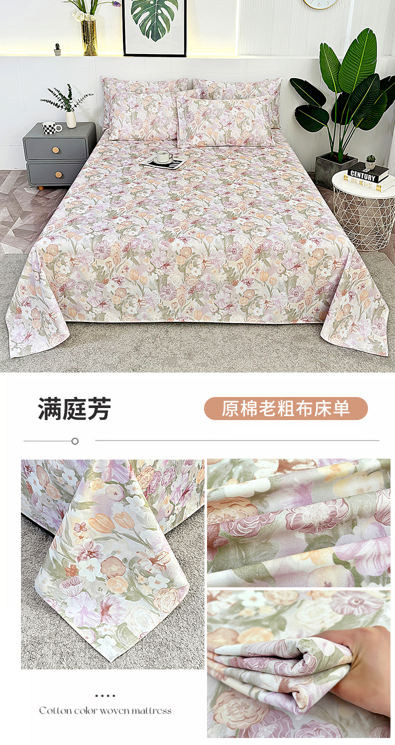 • 91家纺网 家纺一手货源 找家纺 伊而梦蚊帐 2025新款原棉老粗布床单 满庭芳