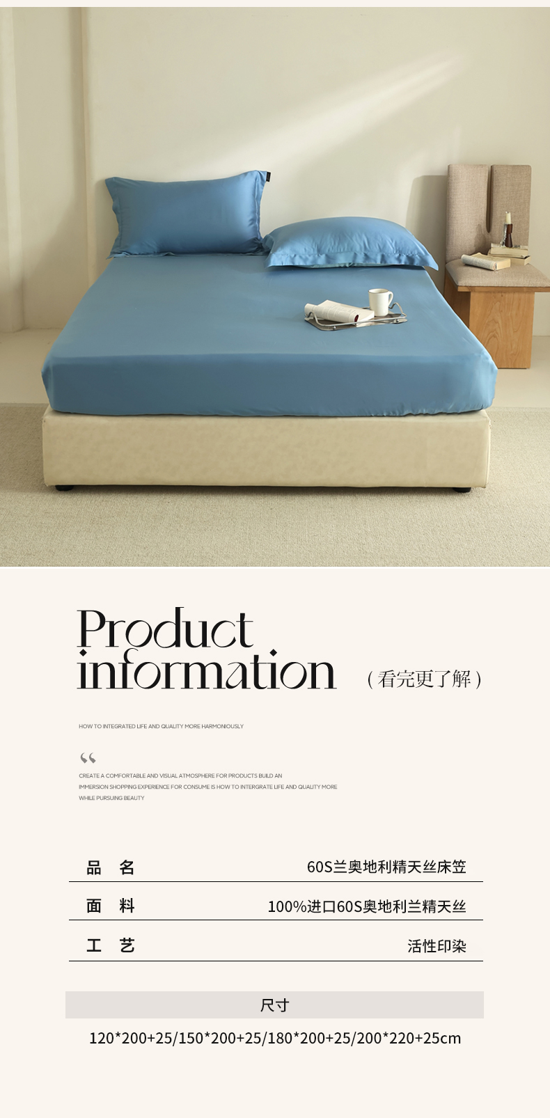 法芙娜家纺 2025新款兰精天丝60天丝床笠 合金兰