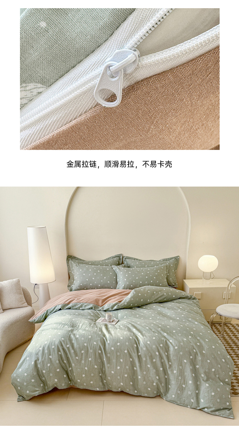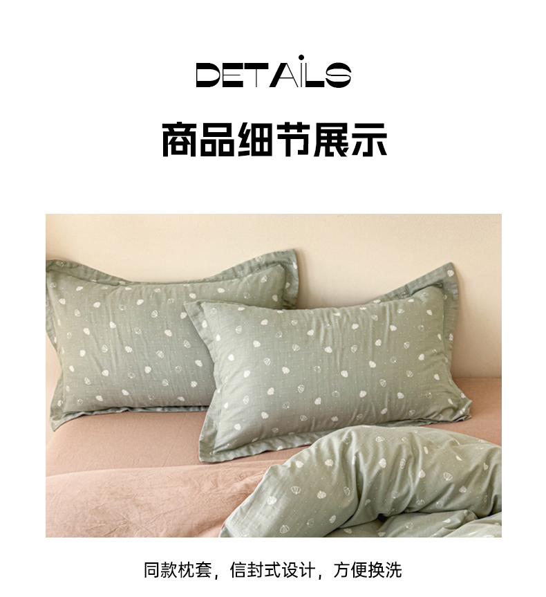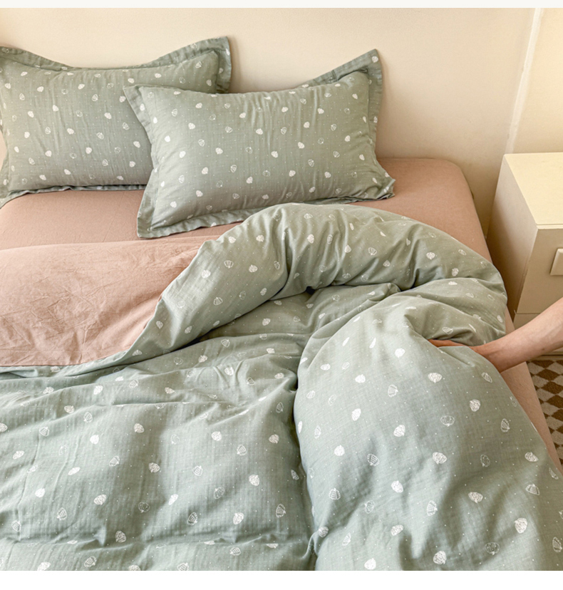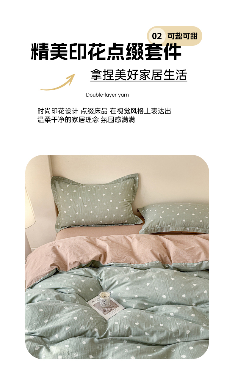 商品名称:喜四方 2025新款全棉A类母婴级抗菌全棉双层纱四件套 南瓜点点-绿