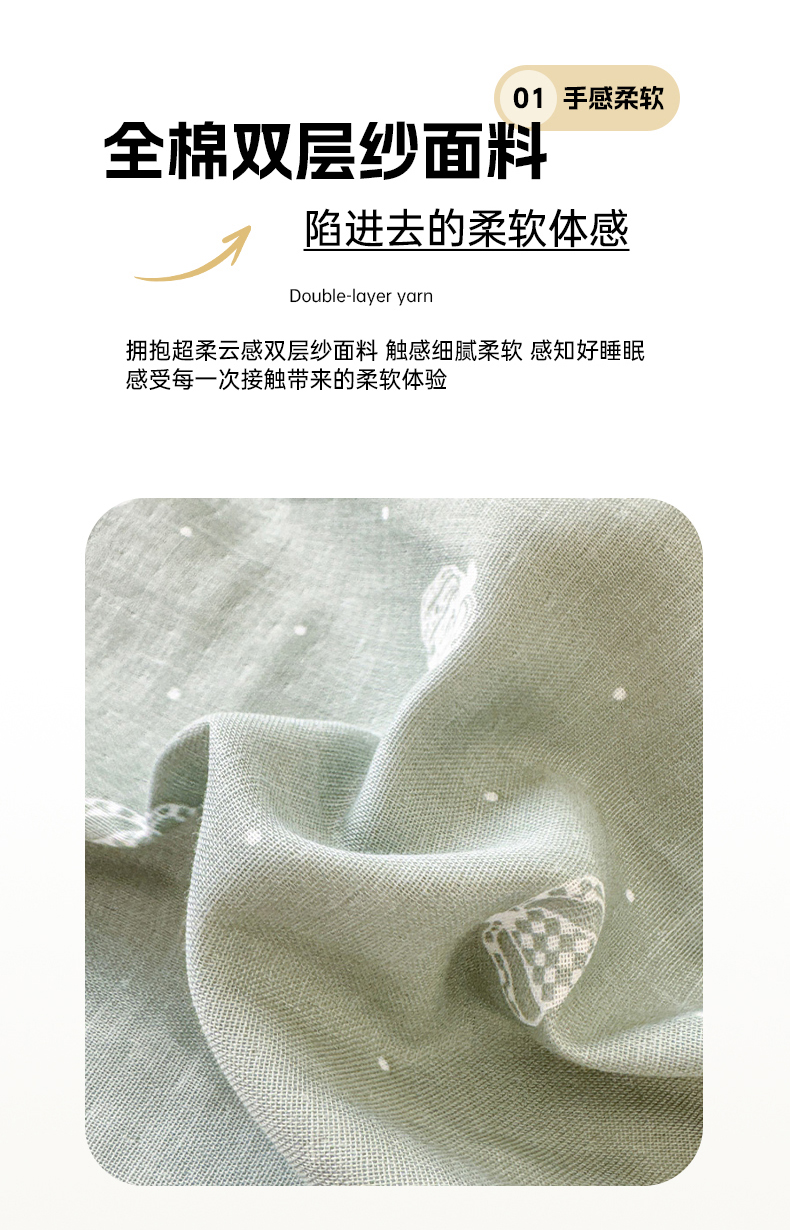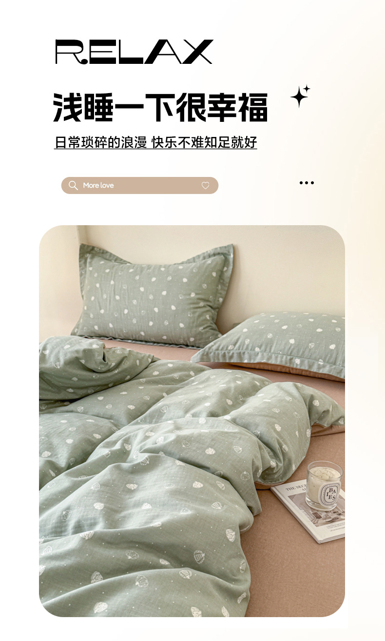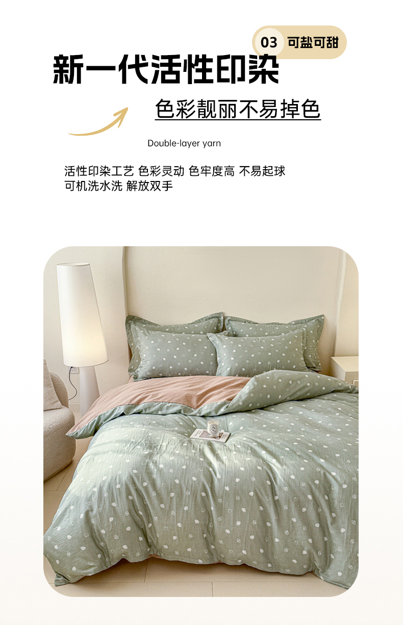 商品名称:喜四方 2025新款全棉A类母婴级抗菌全棉双层纱四件套 南瓜点点-绿