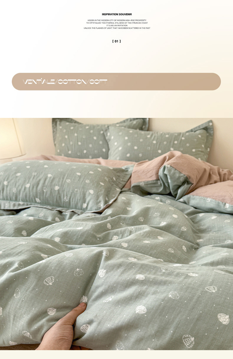 喜四方 2025新款全棉A类母婴级抗菌全棉双层纱四件套 南瓜点点-绿