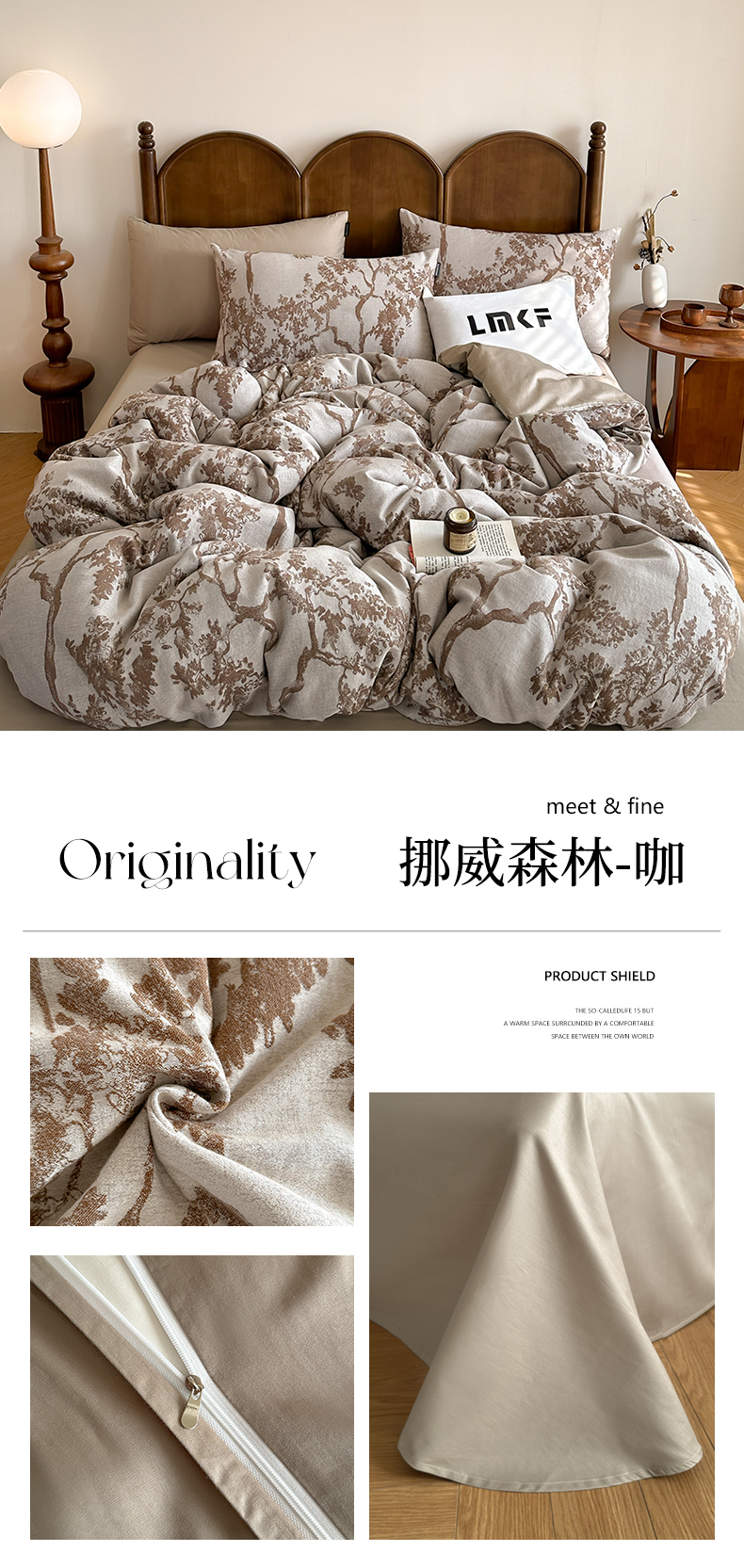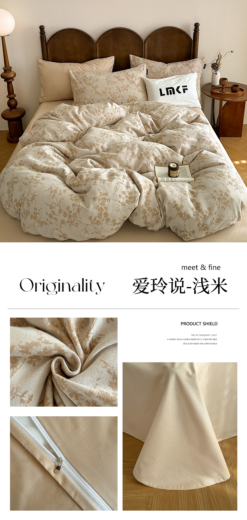 (总)蓝米卡夫 2025秋冬-棉麻色织全棉提花60支磨毛花边款(礼盒包装)提供买家秀,无限之光-卡其,摩卡-灰,纳斯-本色