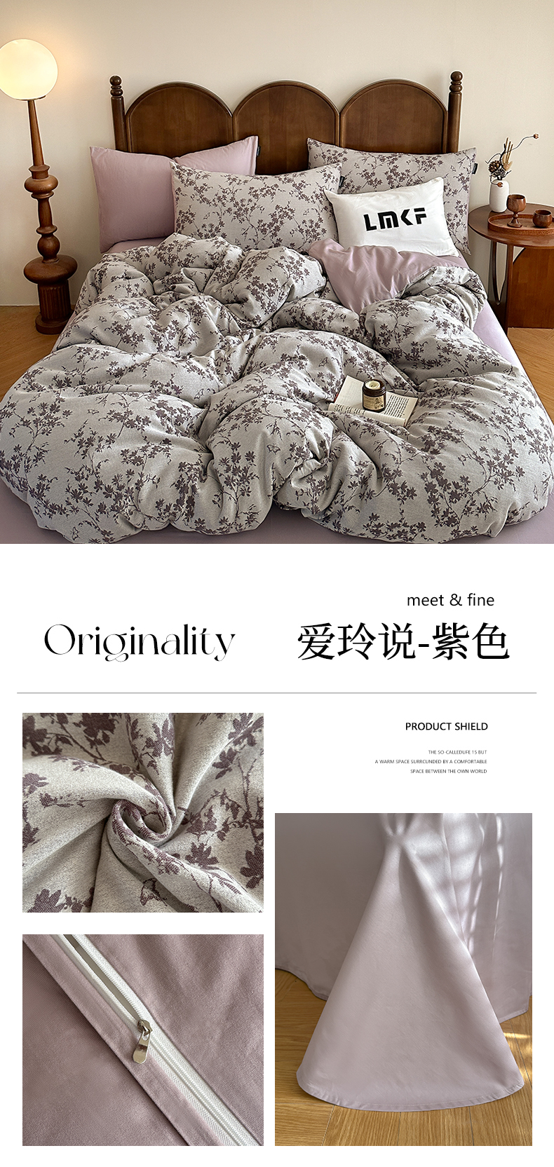 (总)蓝米卡夫 2025秋冬-全棉生态磨毛数码印花-大版花边(礼盒包装)-拍摄风格1 提供买家秀,可可托海-杏粉,可可托海-淡紫,可可托海-浅驼