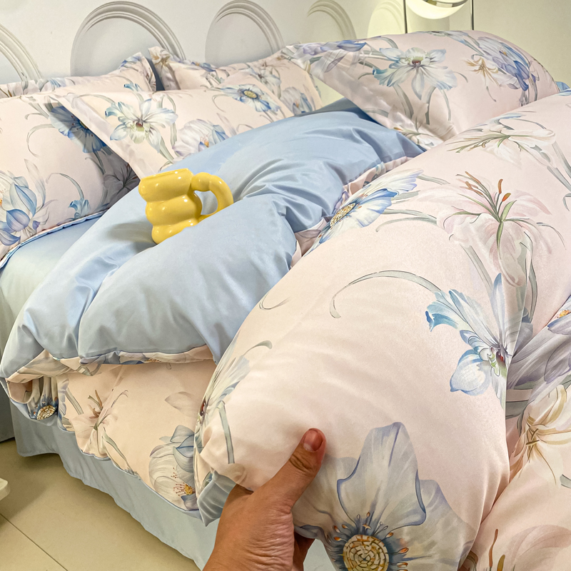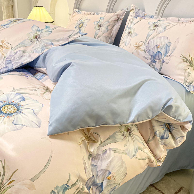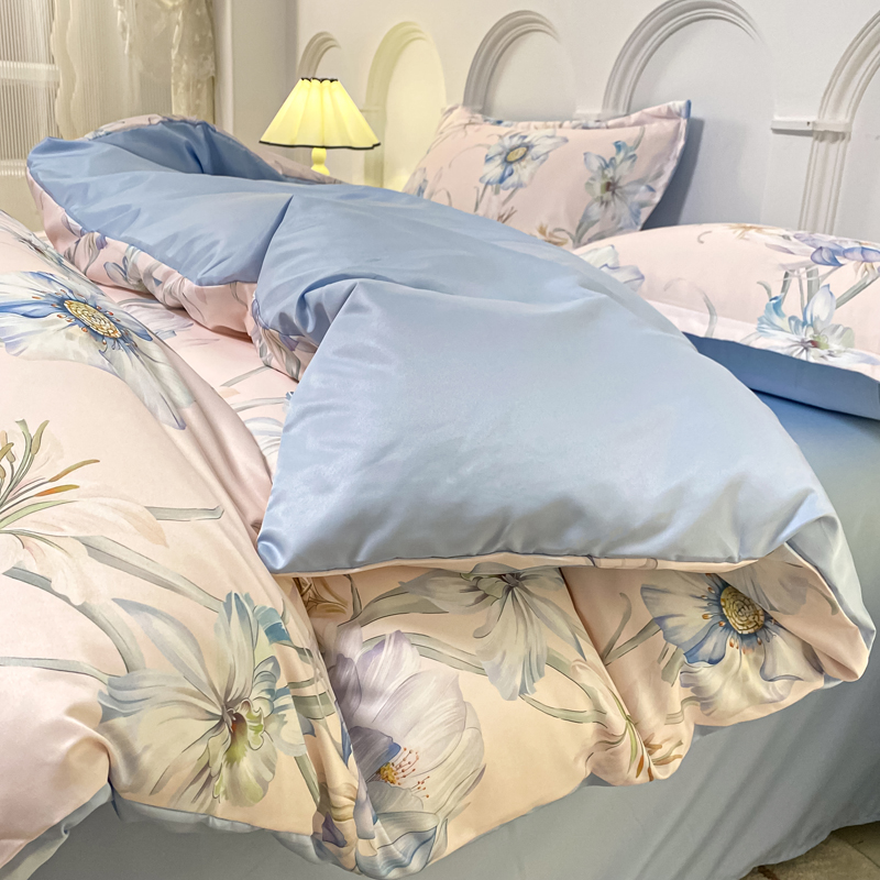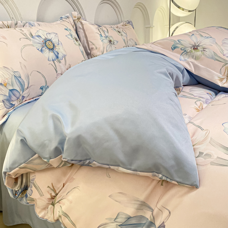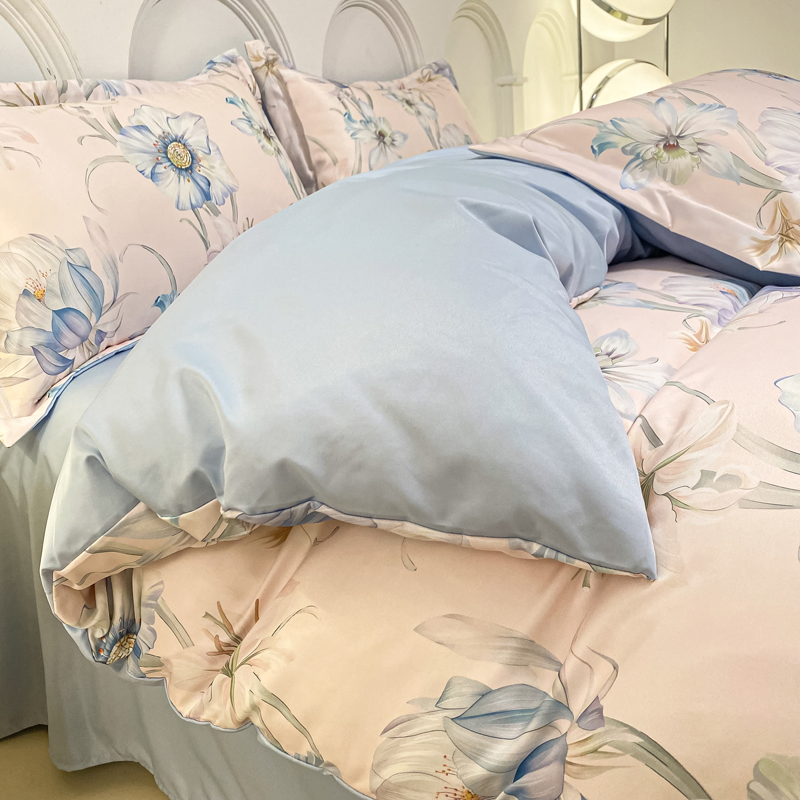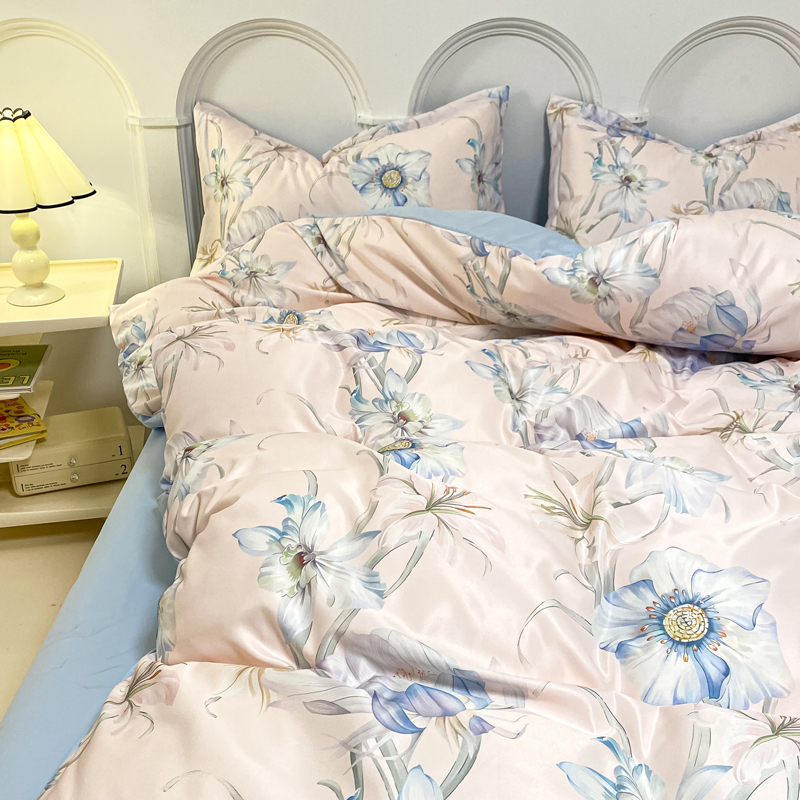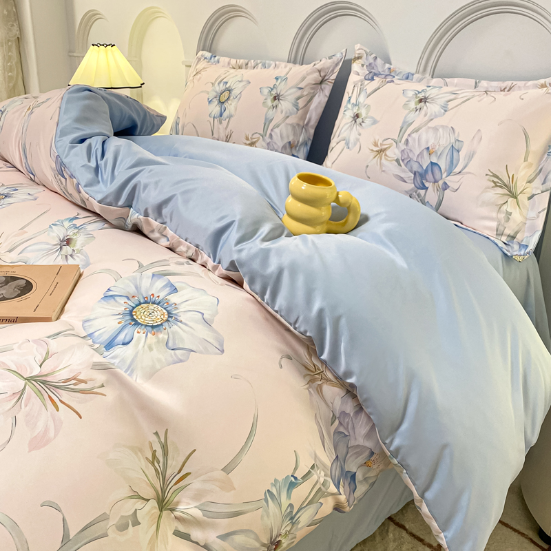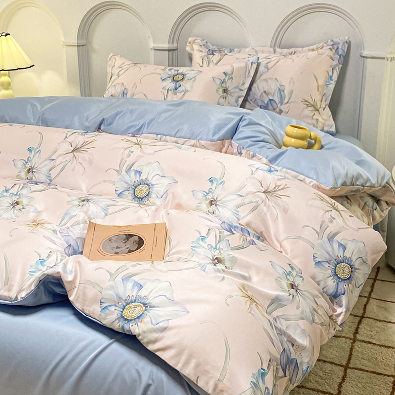 商品名称:悦织湾2025新款冰丝印花四件套美式数码轻奢时尚学生三件套宿舍单双人床上用品4件套 恋人