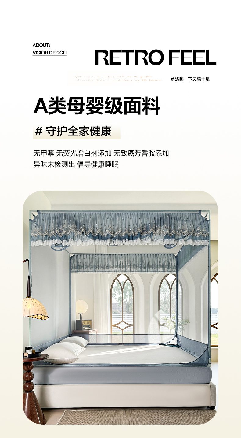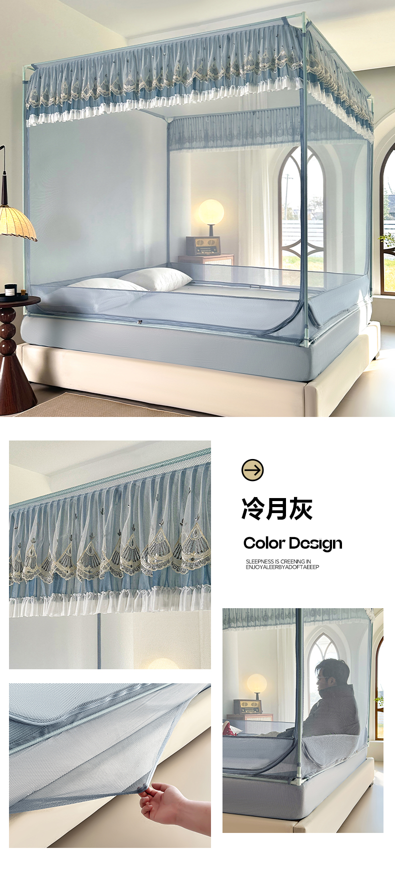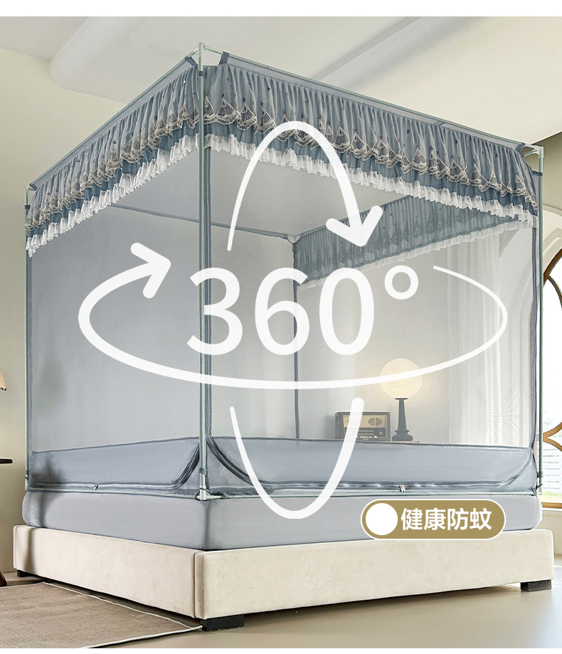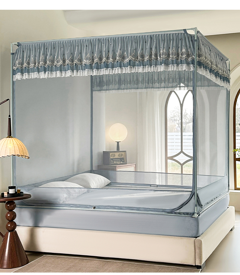 当前位置: 91家纺网 > 商品网购 > 床上用品 > 蚊帐 > 坐床式蚊帐 > 伊而梦蚊帐 2025新款908款U型门蕾丝三开门坐床蚊帐 908 冷月灰-经典铁艺支架