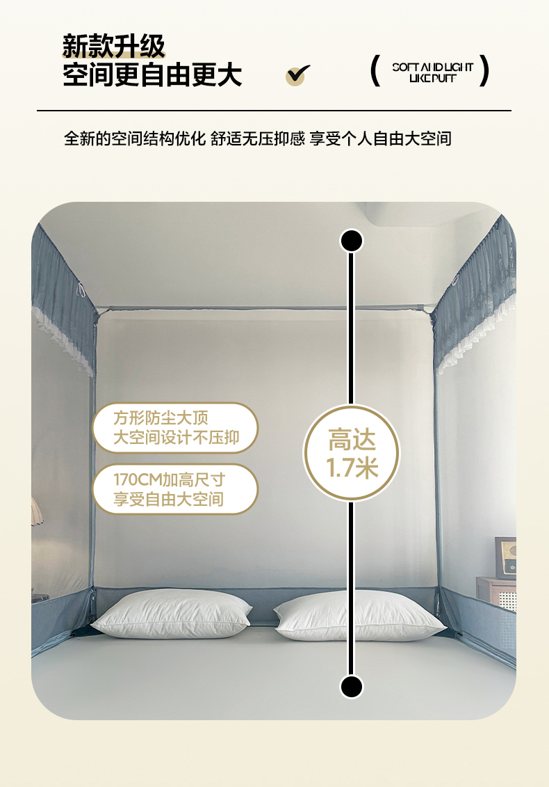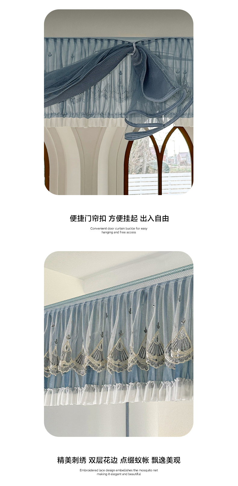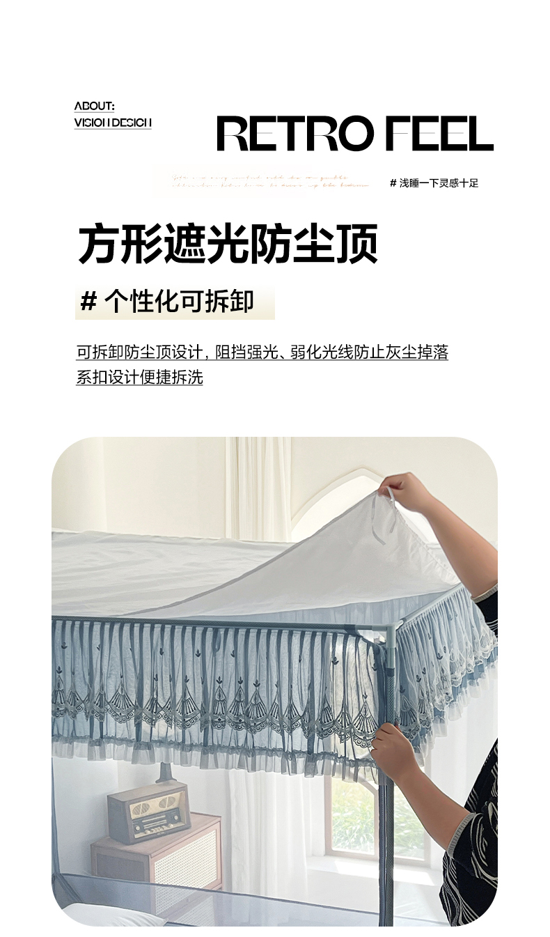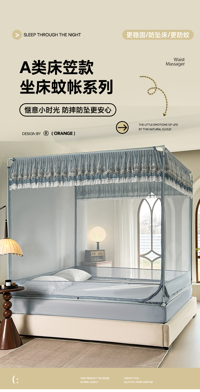 当前位置: 91家纺网 > 商品网购 > 床上用品 > 蚊帐 > 坐床式蚊帐 > 伊而梦蚊帐 2025新款908款U型门蕾丝三开门坐床蚊帐 908 冷月灰-经典铁艺支架