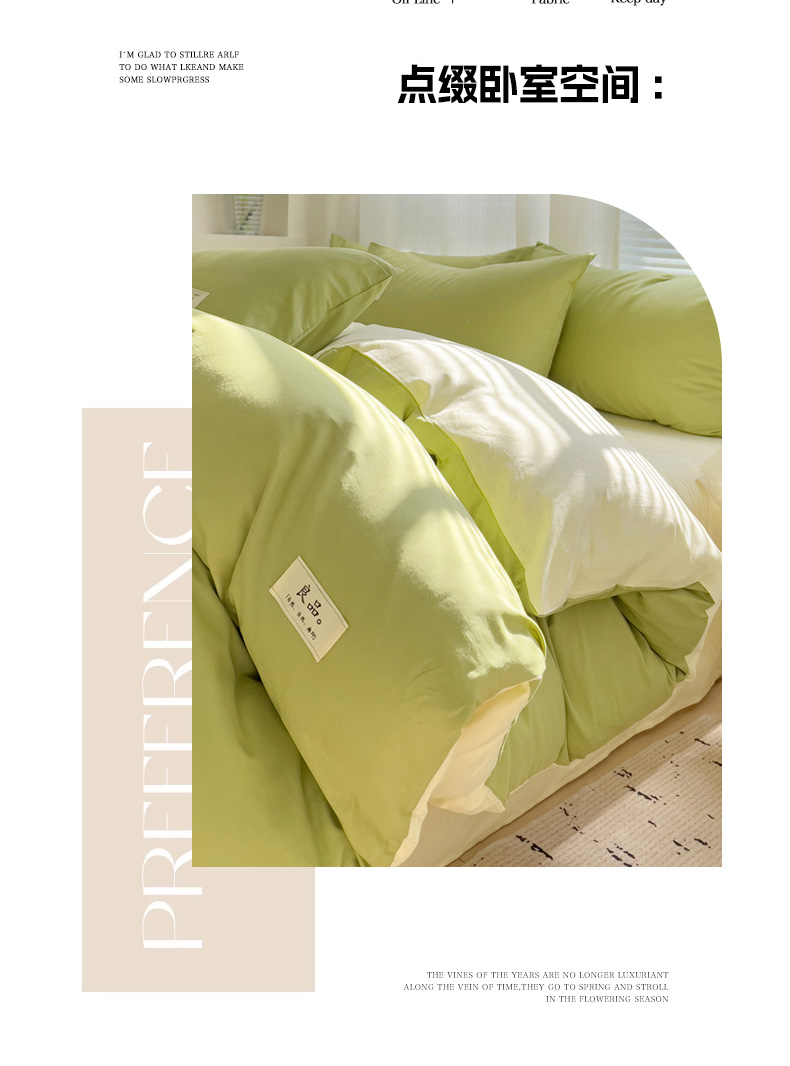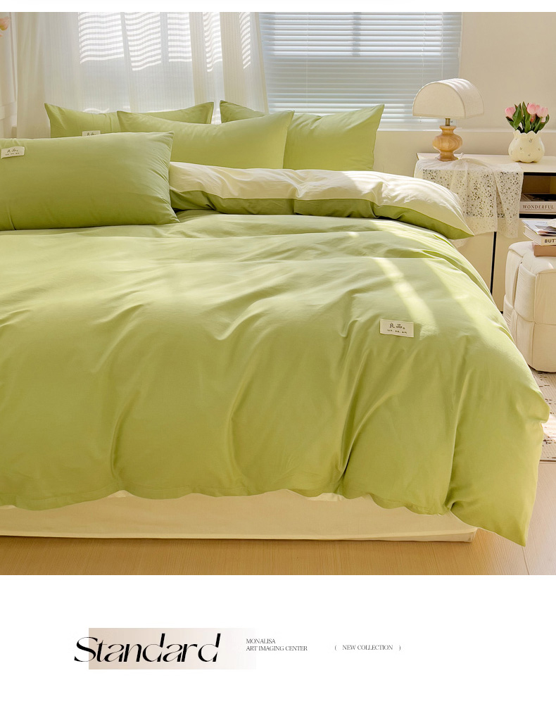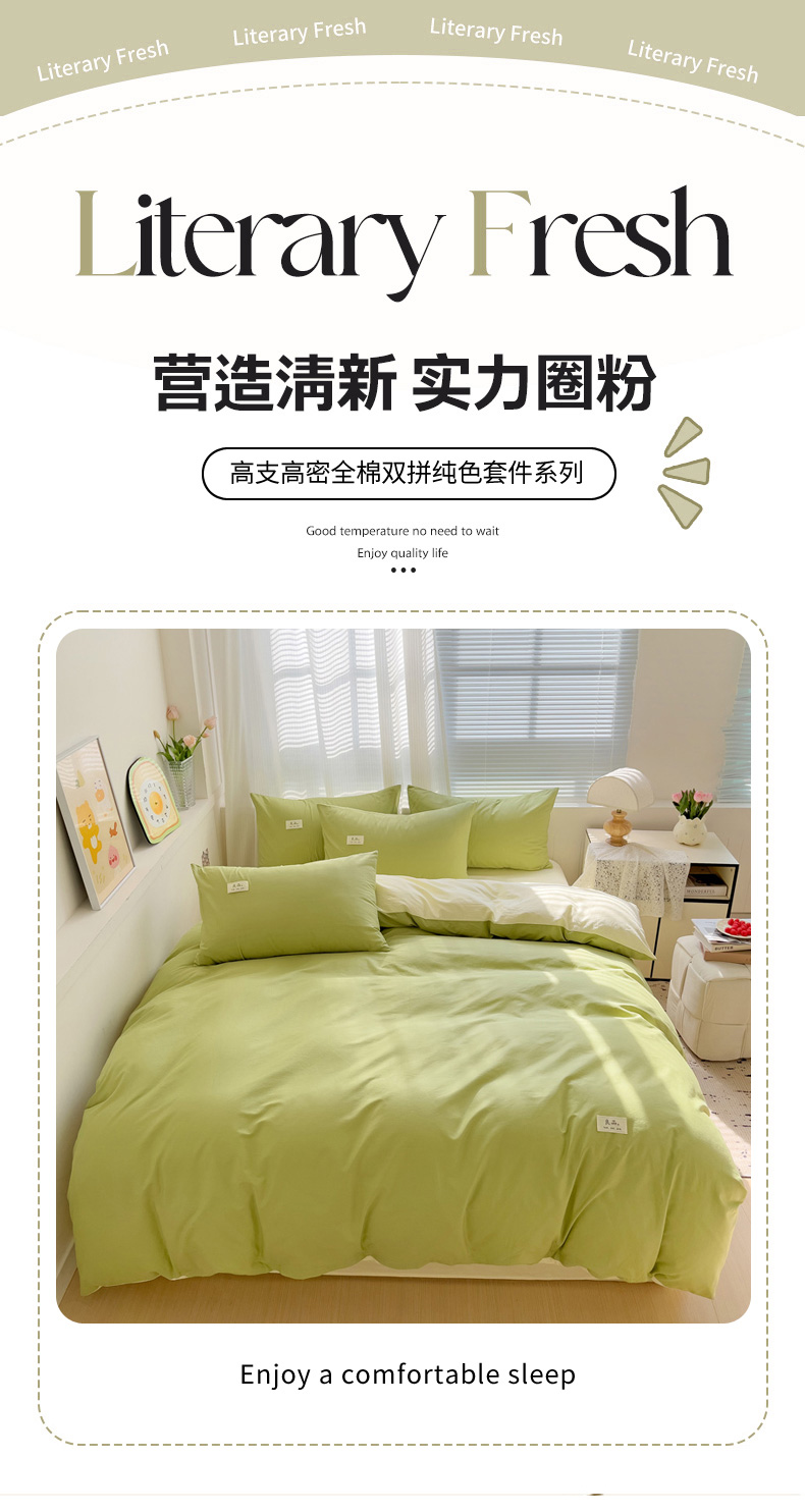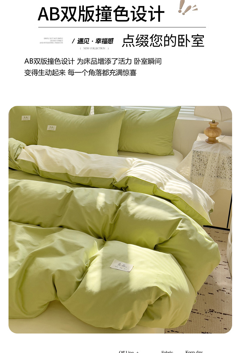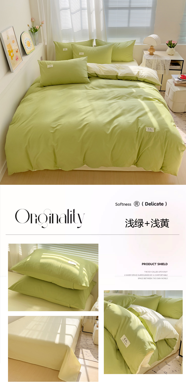 • 91家纺网 家纺一手货源 找家纺 眠博士 2025新款全棉40支纯色系列单被套 全棉拼色-浅绿+浅黄