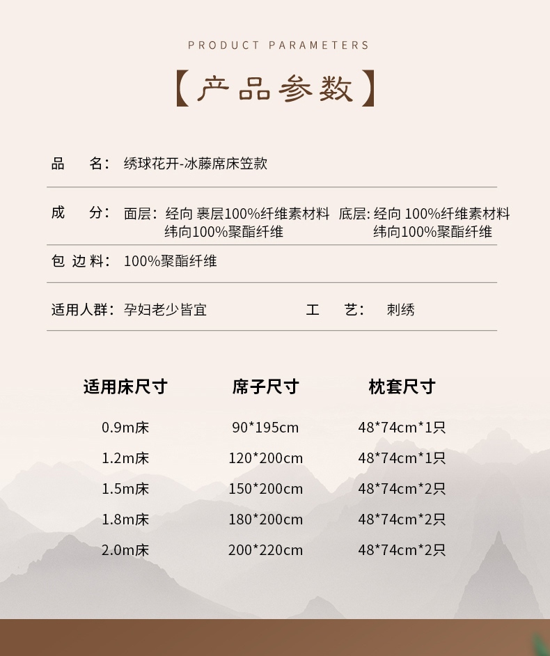 当前位置: 91家纺网 > 商品网购 > 床上用品 > 凉席 > 藤席 > 小牛席业2025新款绣球花开-冰藤双面席系列(床笠款)凉席藤席冰藤席竹席空调席草席冰丝席豆豆席乳胶席三件套 绣球花开-冰藤床笠款(深咖)