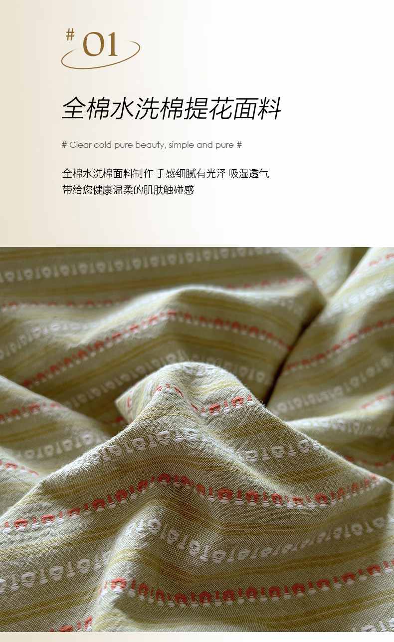 (总)田野 2025新款全棉水洗棉提花锦绣系列四件套,锦绣-灰,锦绣-卡其,锦绣-绿