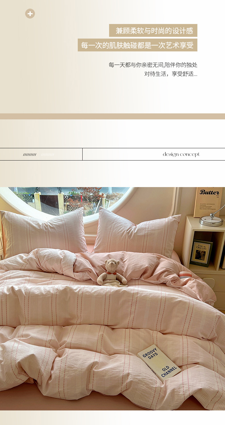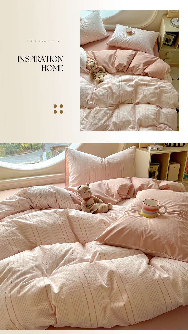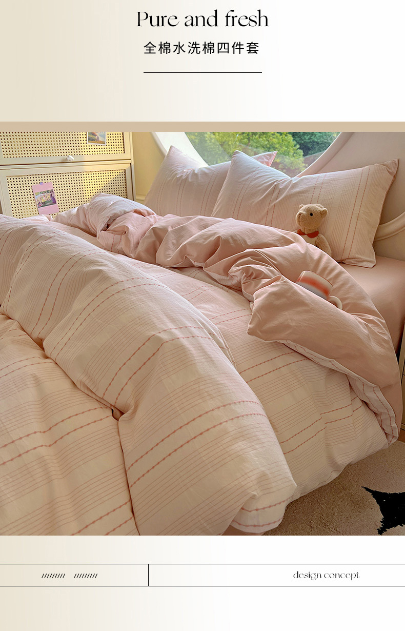 田野家纺2025新款全棉水洗棉米粒系列四件套 水洗棉米拉 粉