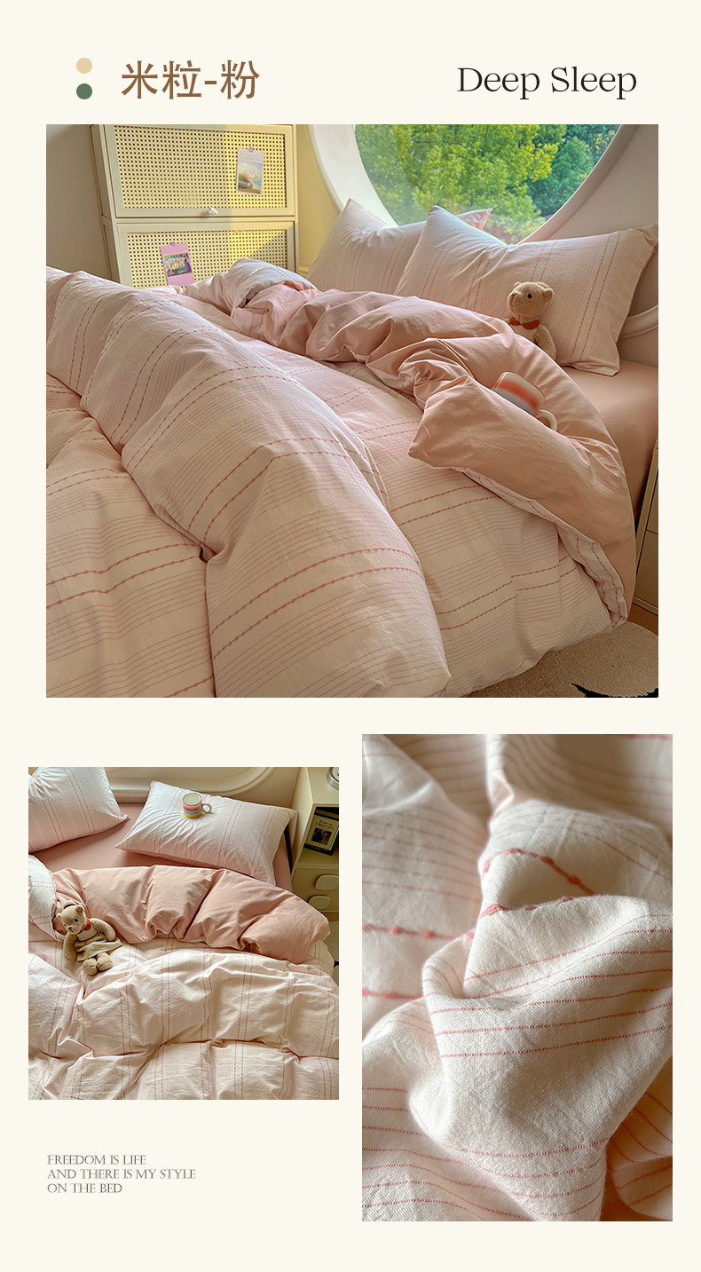 商品名称:田野家纺2025新款全棉水洗棉米粒系列四件套 水洗棉米拉 粉