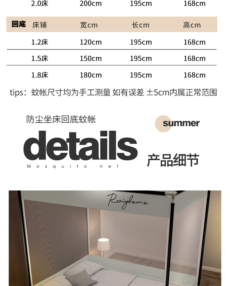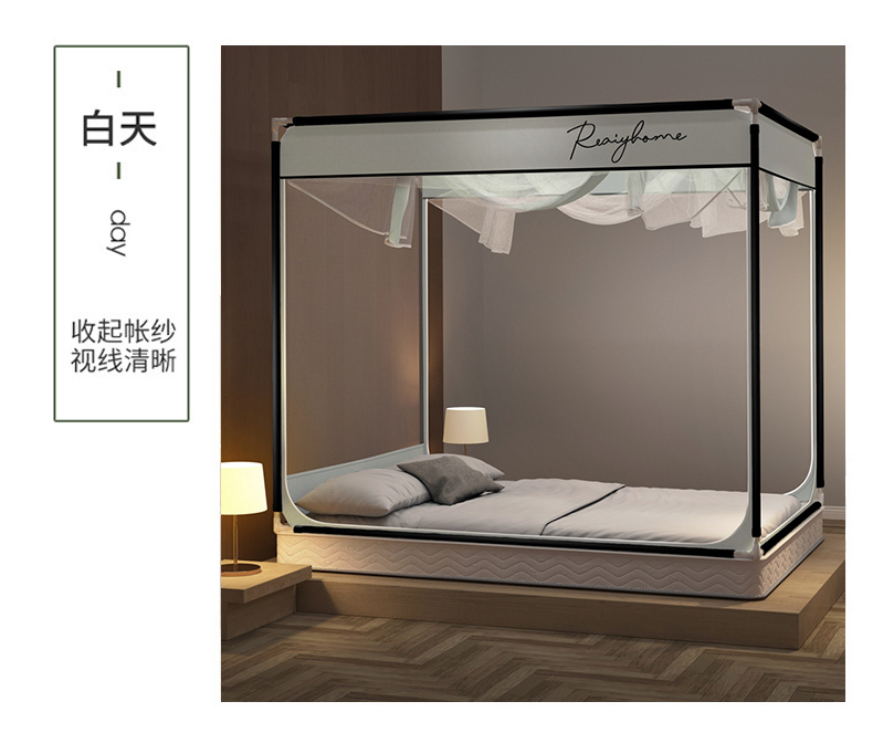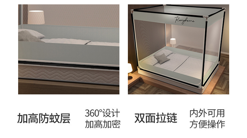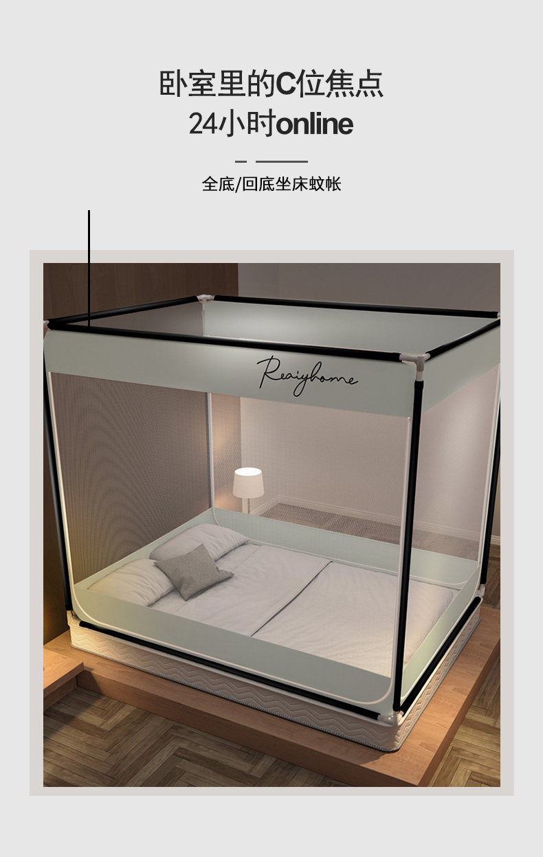 商品名称:飞轮海蚊帐 2025新款稳固防坠落回底全底坐床蚊帐Z62 白灰(全底)