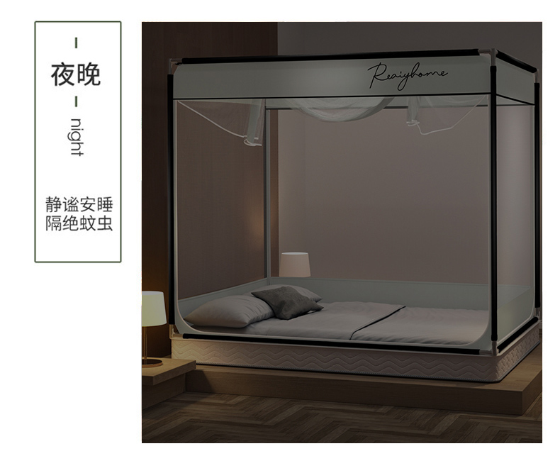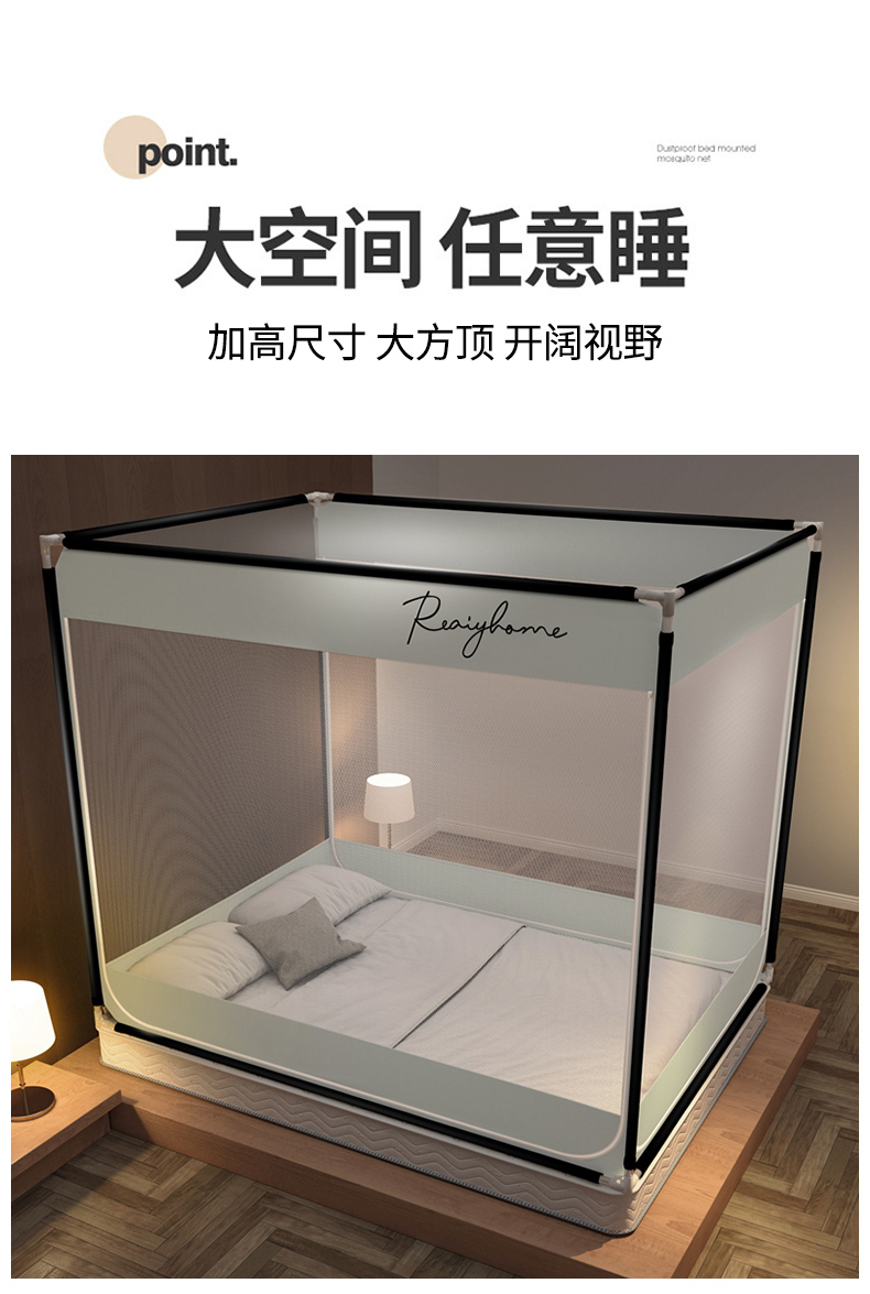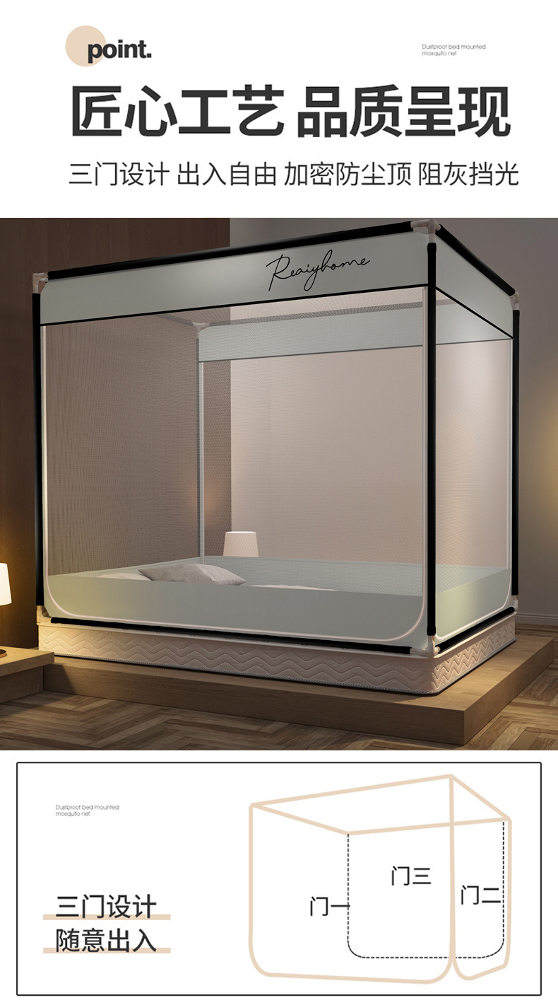 (总)飞轮海蚊帐 2023新款三开门落地遮光蚊帐-L-93,高级灰,芥末绿,奶油黄,香槟
