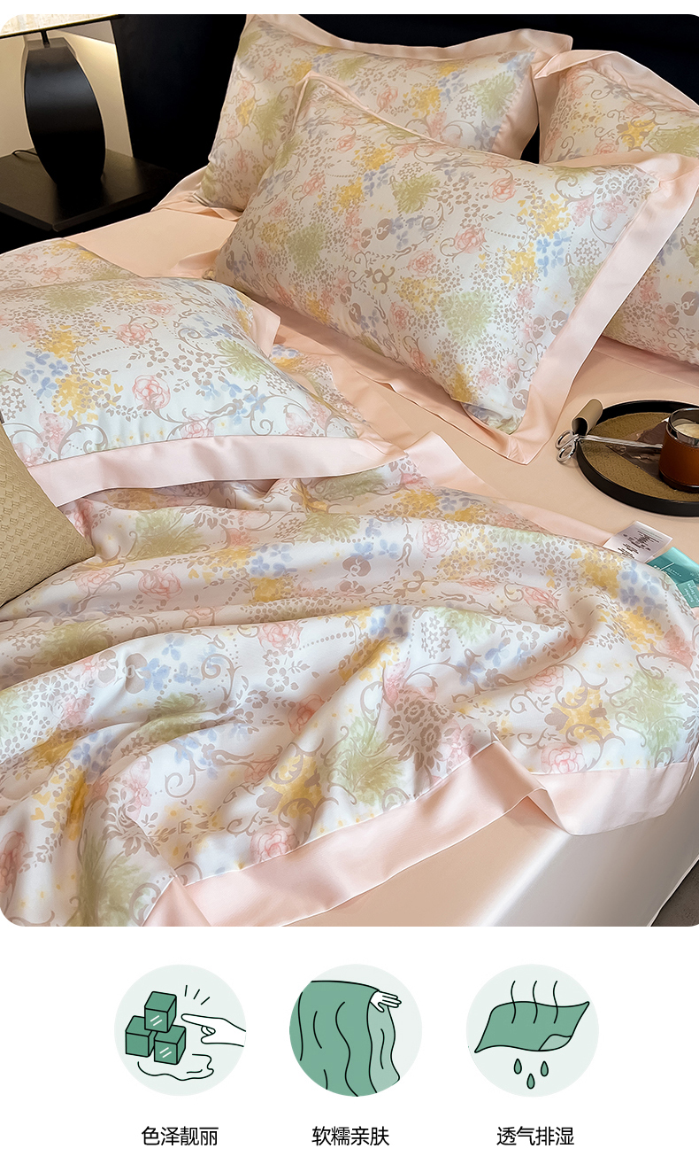 商品名称:朵希曼2025新款50天丝宽边夏被和夏被四件套系列 布伦达