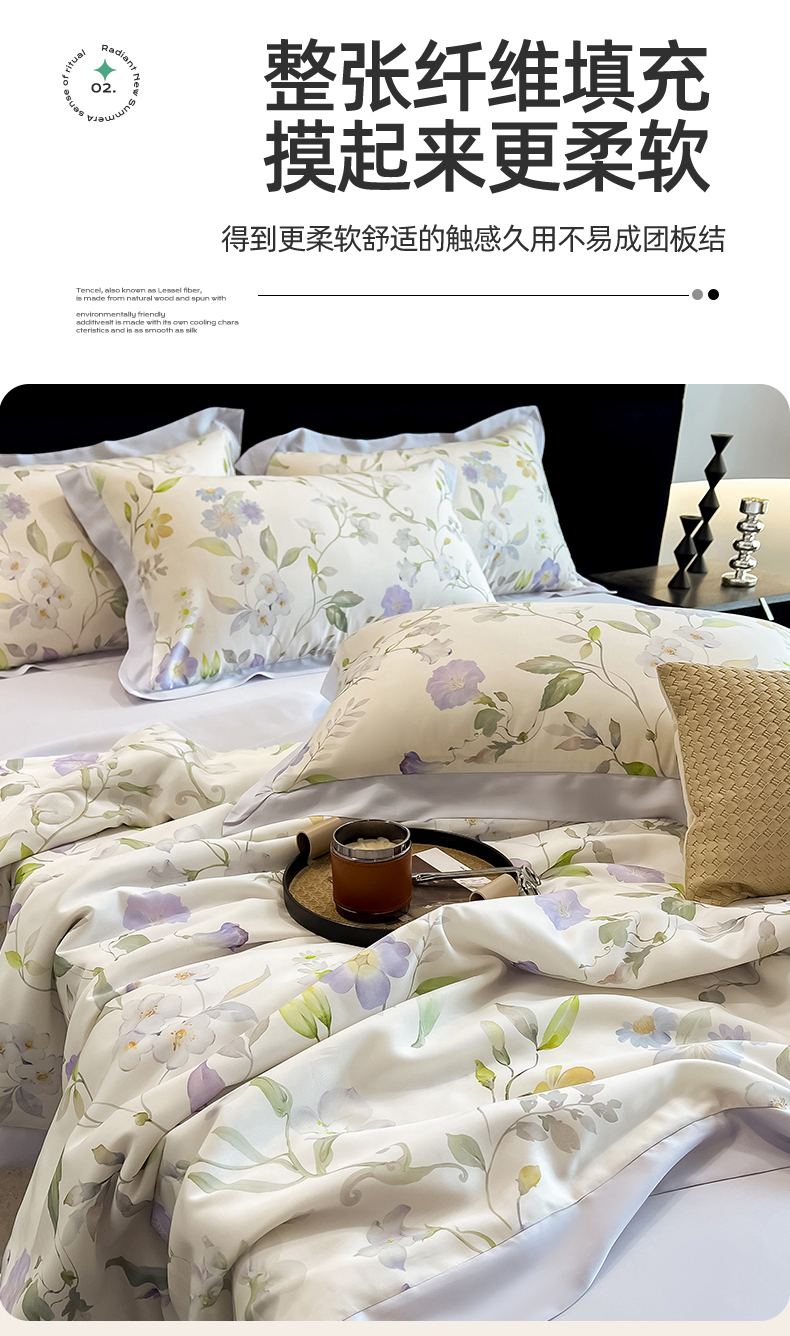 朵希曼2025新款50天丝宽边夏被和夏被四件套系列 清风漫舞 米白