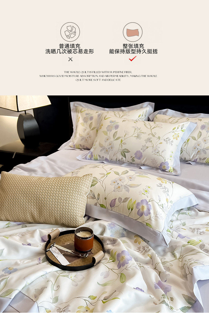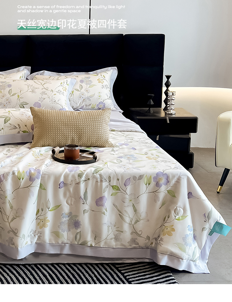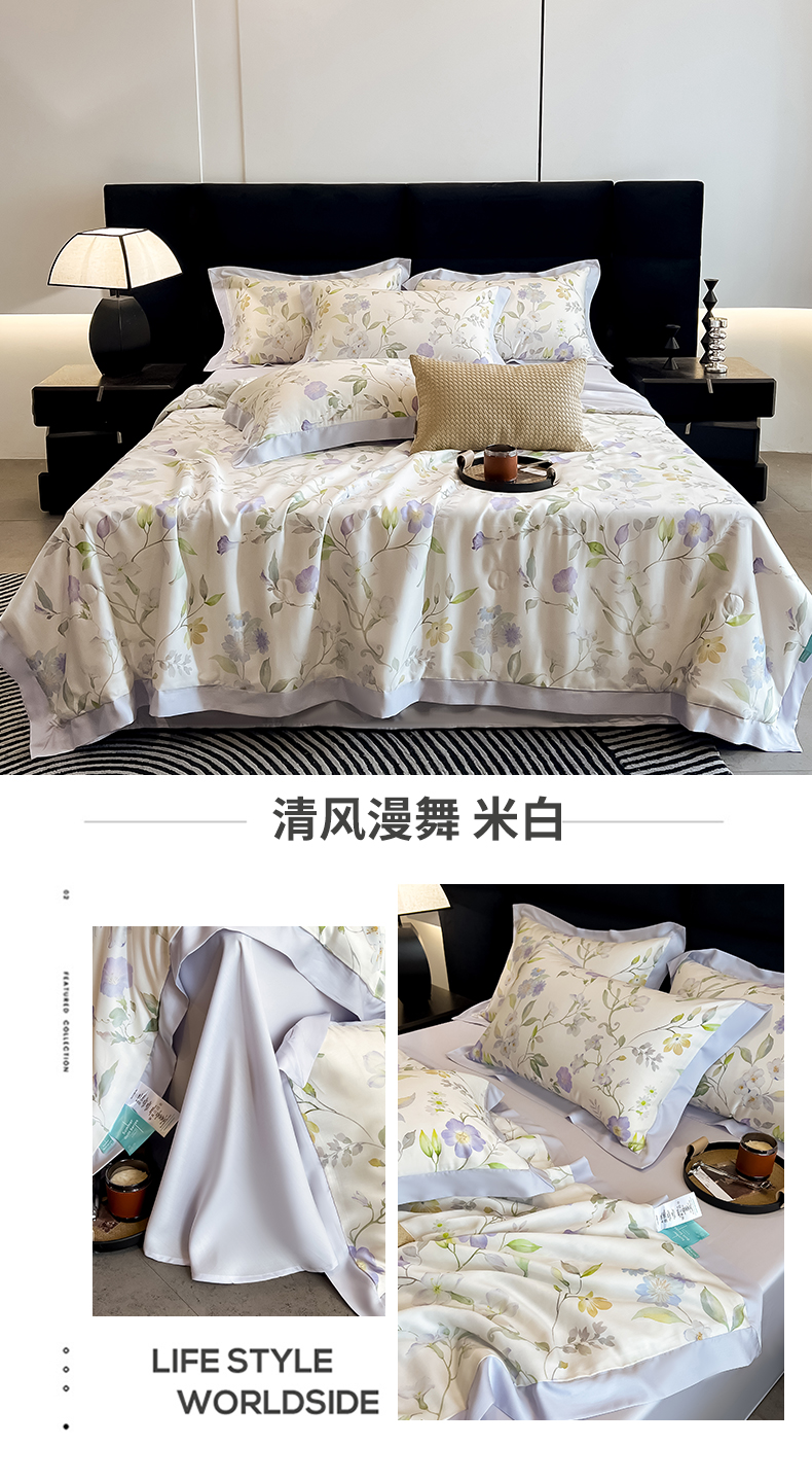 商品名称:朵希曼2025新款50天丝宽边夏被和夏被四件套系列 清风漫舞 米白