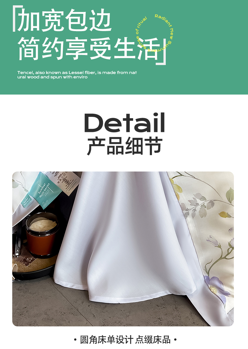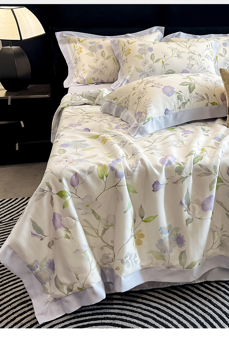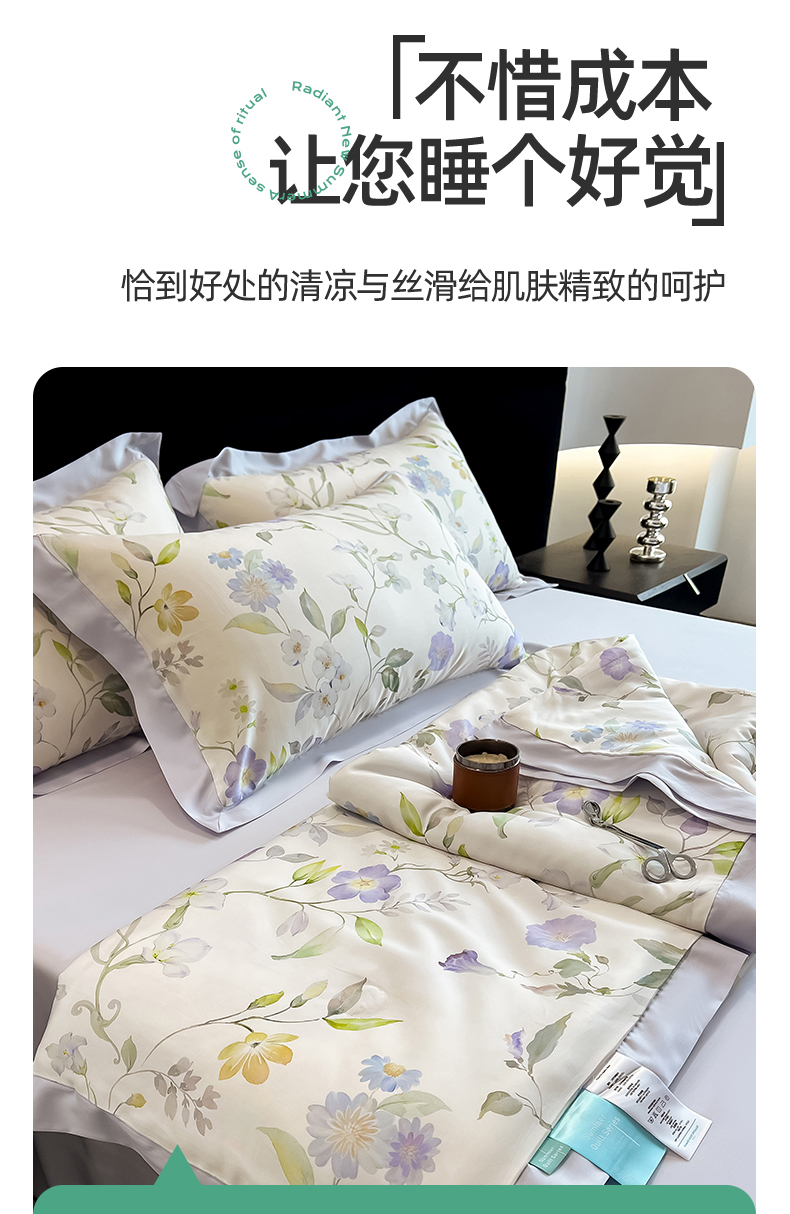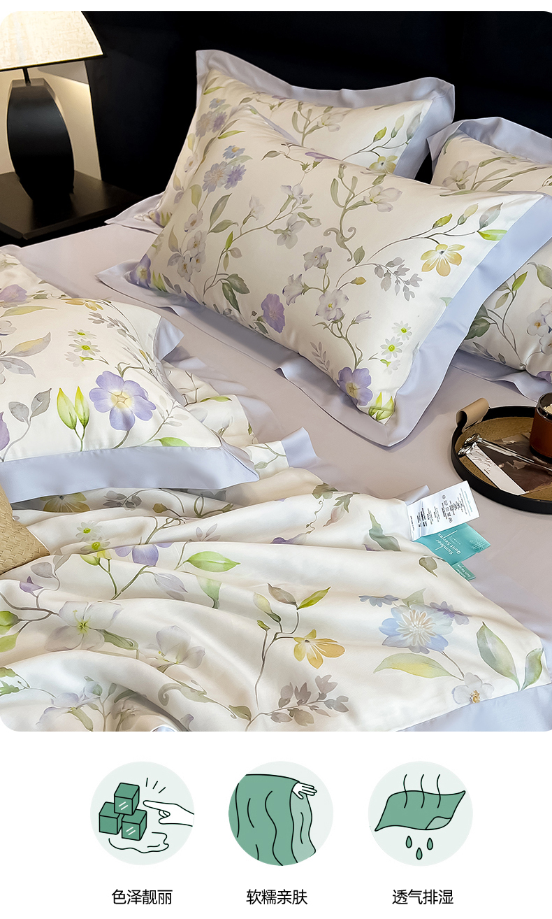 商品名称:朵希曼2025新款50天丝宽边夏被和夏被四件套系列 清风漫舞 米白