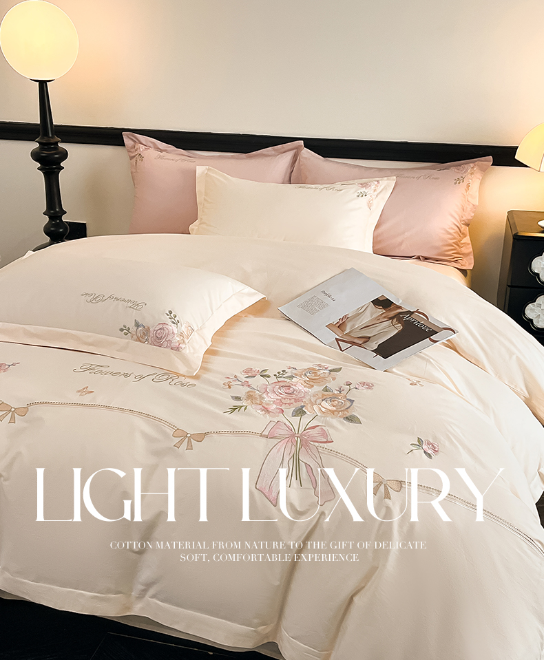 (总)理想家家纺 2025新款纯棉轻奢刺绣四件套-小秘密系列,小秘密-白,小秘密-粉,小秘密-蓝