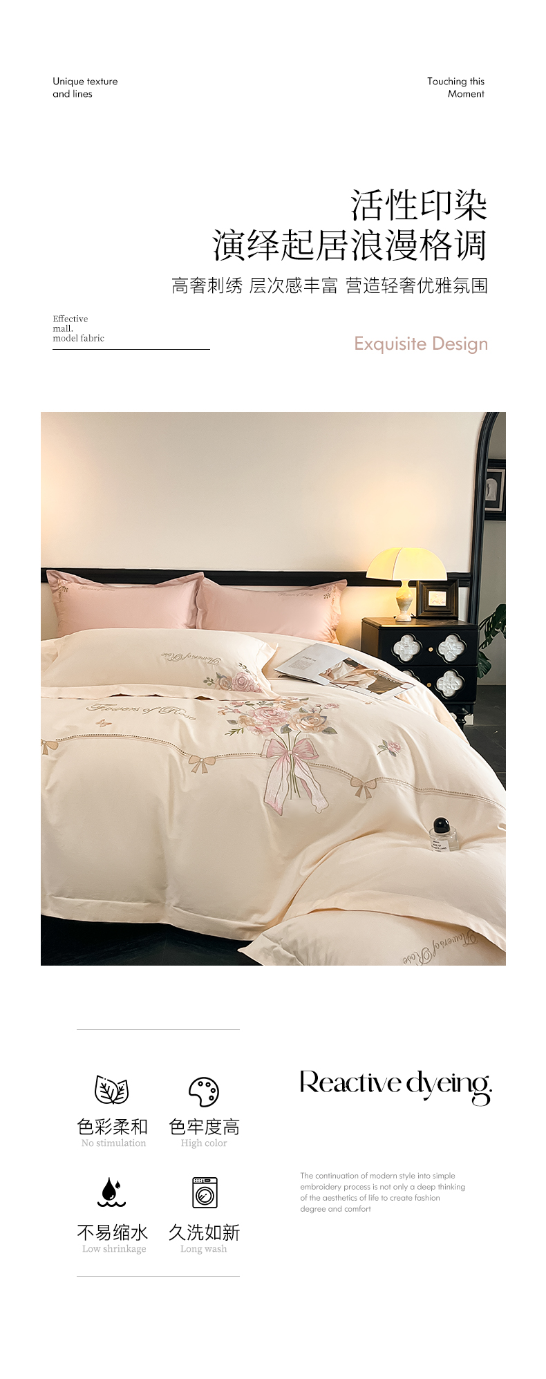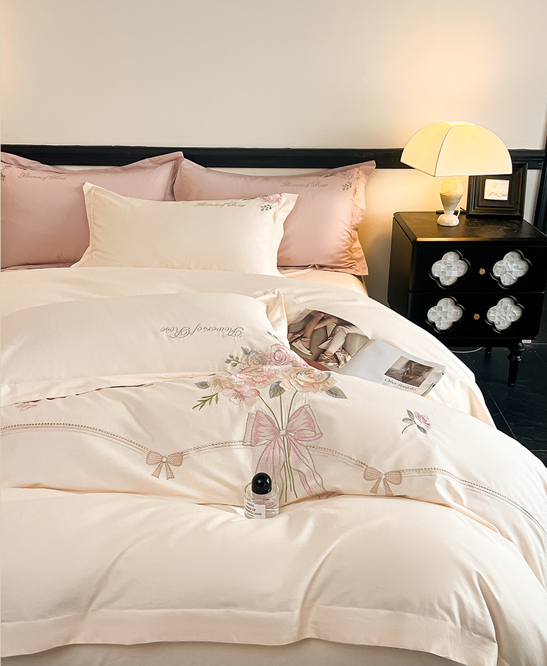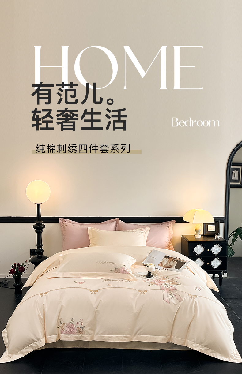 (总)理想家家纺 2025新款纯棉轻奢刺绣四件套-小秘密系列场景二,小秘密 粉,小秘密 黄,小秘密 蓝