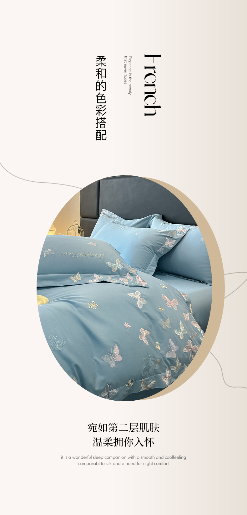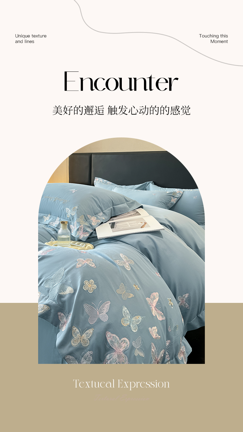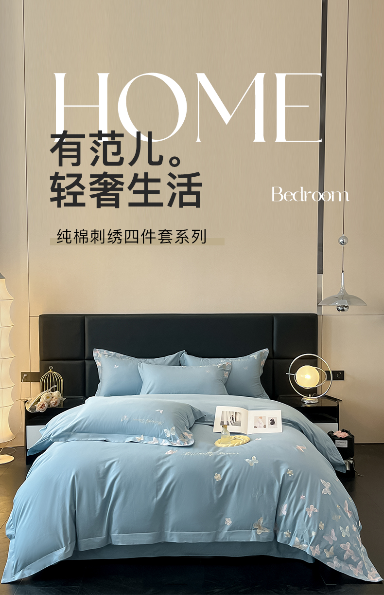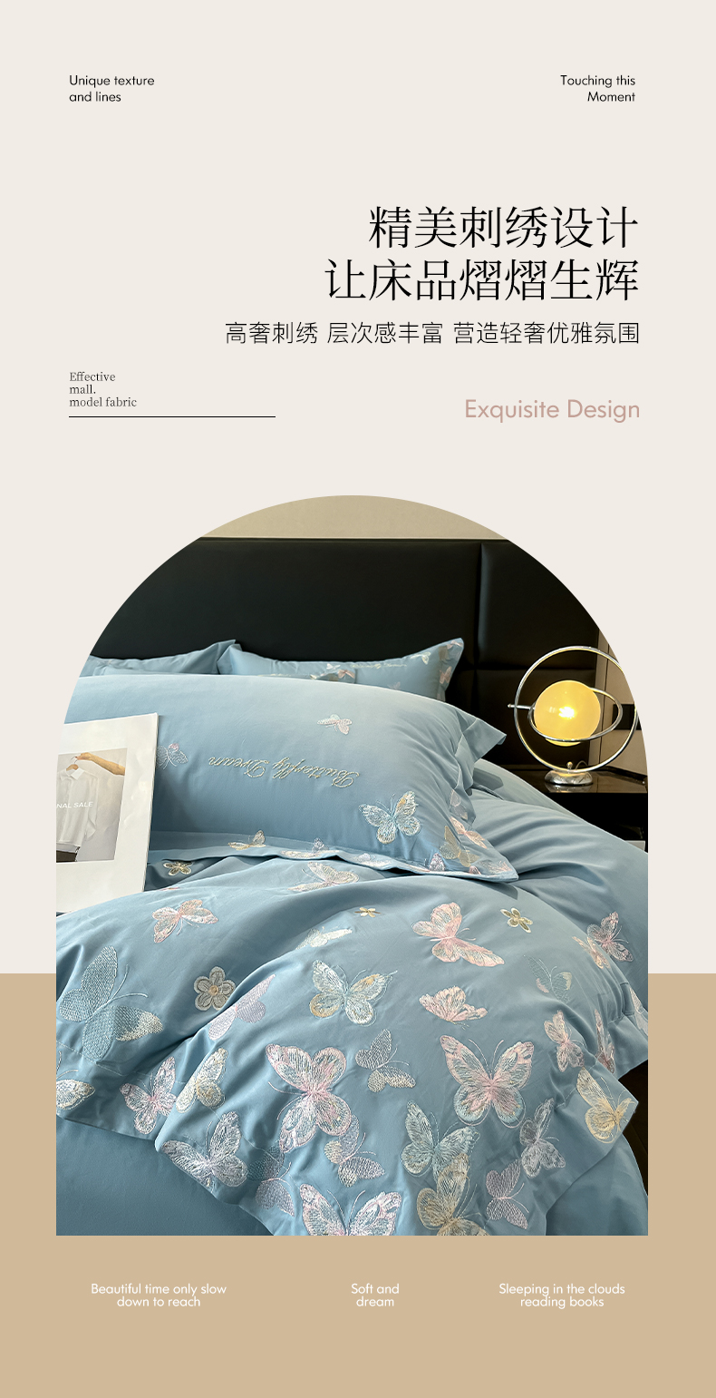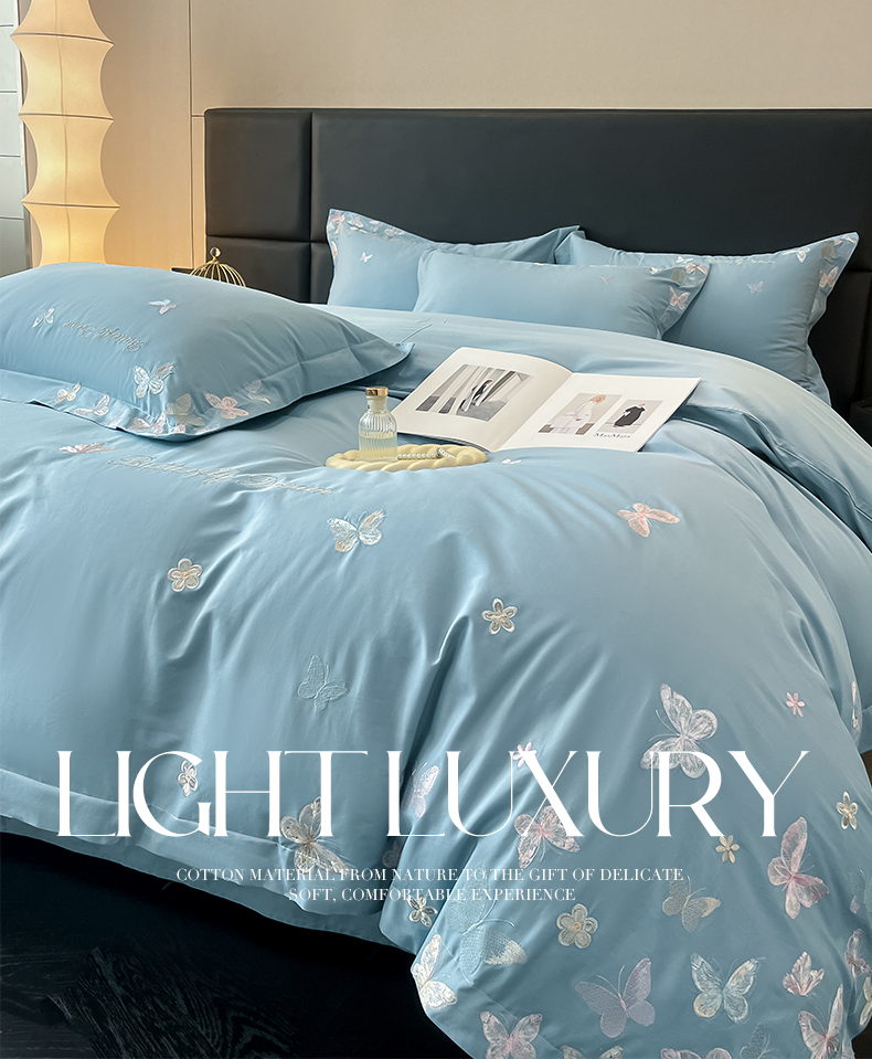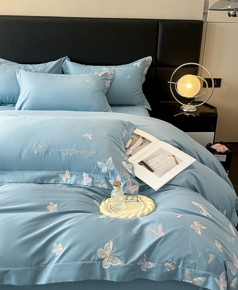 商品名称:理想家家纺 2025新款亲肤舒适纯棉刺绣四件套-蝶影流光 蝶影流光-兰