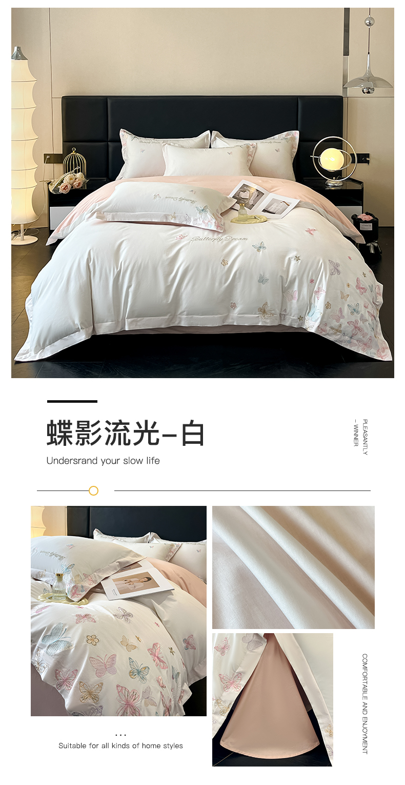 (总)理想家家纺 理想家家纺 2025新款云朵棉水洗真丝刺绣四件套,翩羽白,翩羽粉,翩羽蓝,翩羽绿,翩羽紫