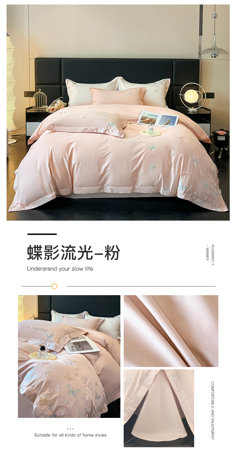 (总)理想家家纺 2025新款纯棉轻奢刺绣四件套-小秘密系列场景二,小秘密 粉,小秘密 黄,小秘密 蓝