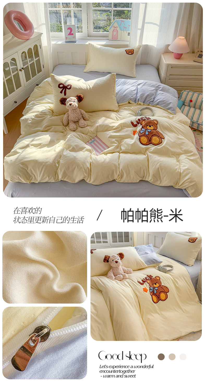 商品名称:温眠家纺 2025新款水洗棉毛巾绣四件套 帕帕熊-米