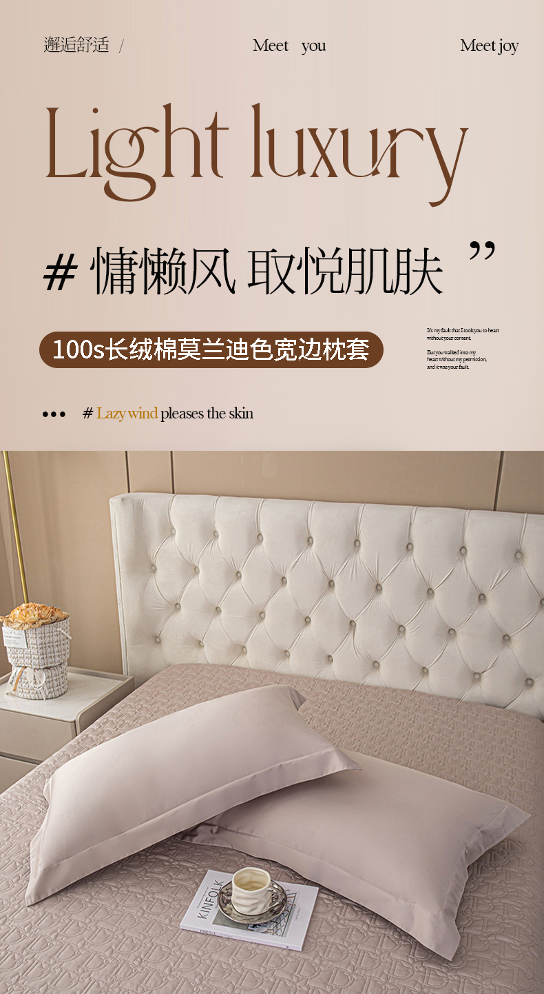 商品名称:(总)金喜2025新款100支全棉枕套宽边工艺100S长绒棉枕头套-莫兰迪色系