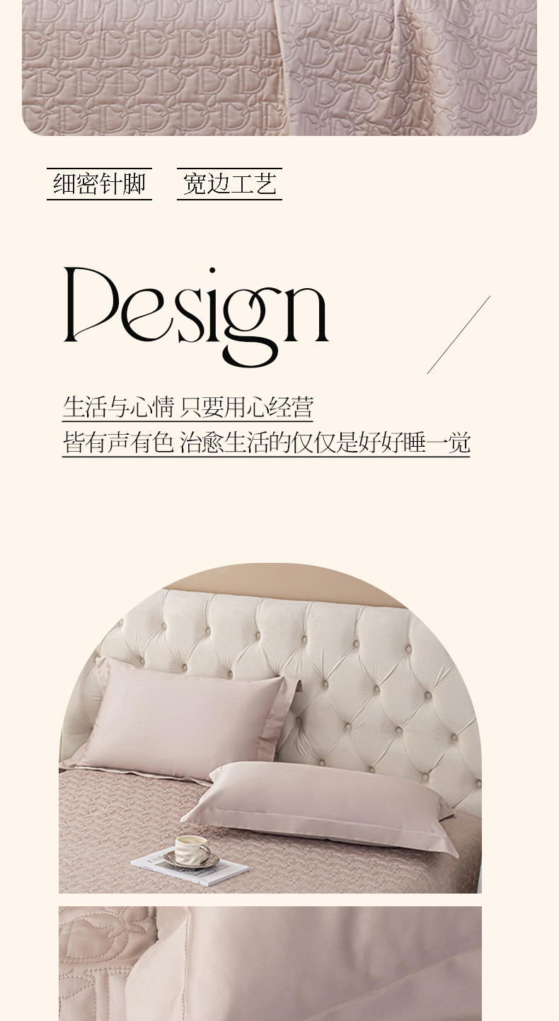(总)金喜 2024新款100支全棉床盖蚕丝床盖三件套D型绗缝系列,白桃粉,繁花橙,粉雅灰,迷雾金,木槿绿