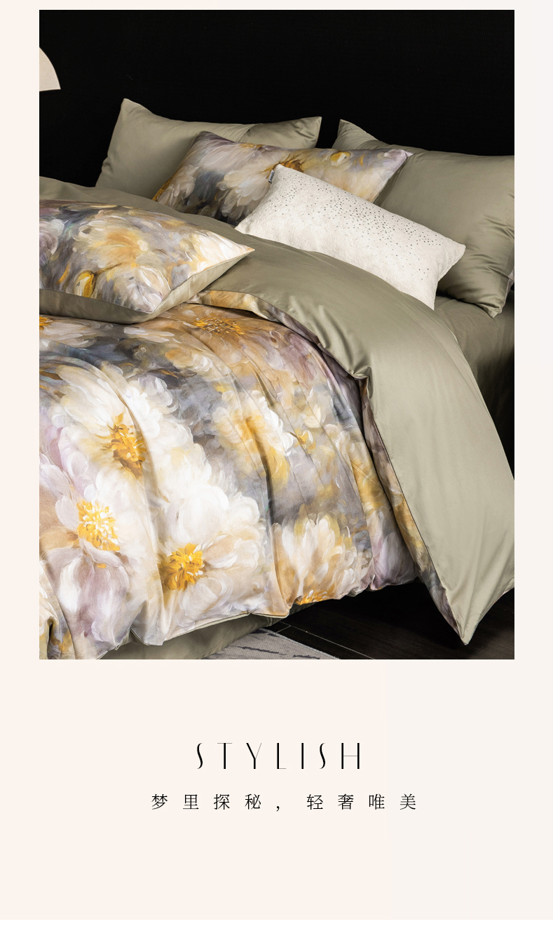 商品名称:立奥被业 2025新款60S数码印花四件套四件套 秋菊绿