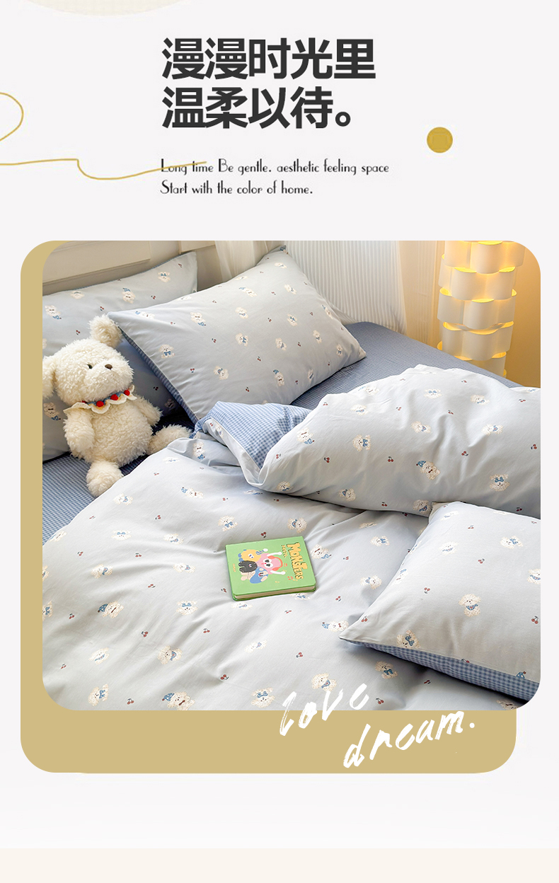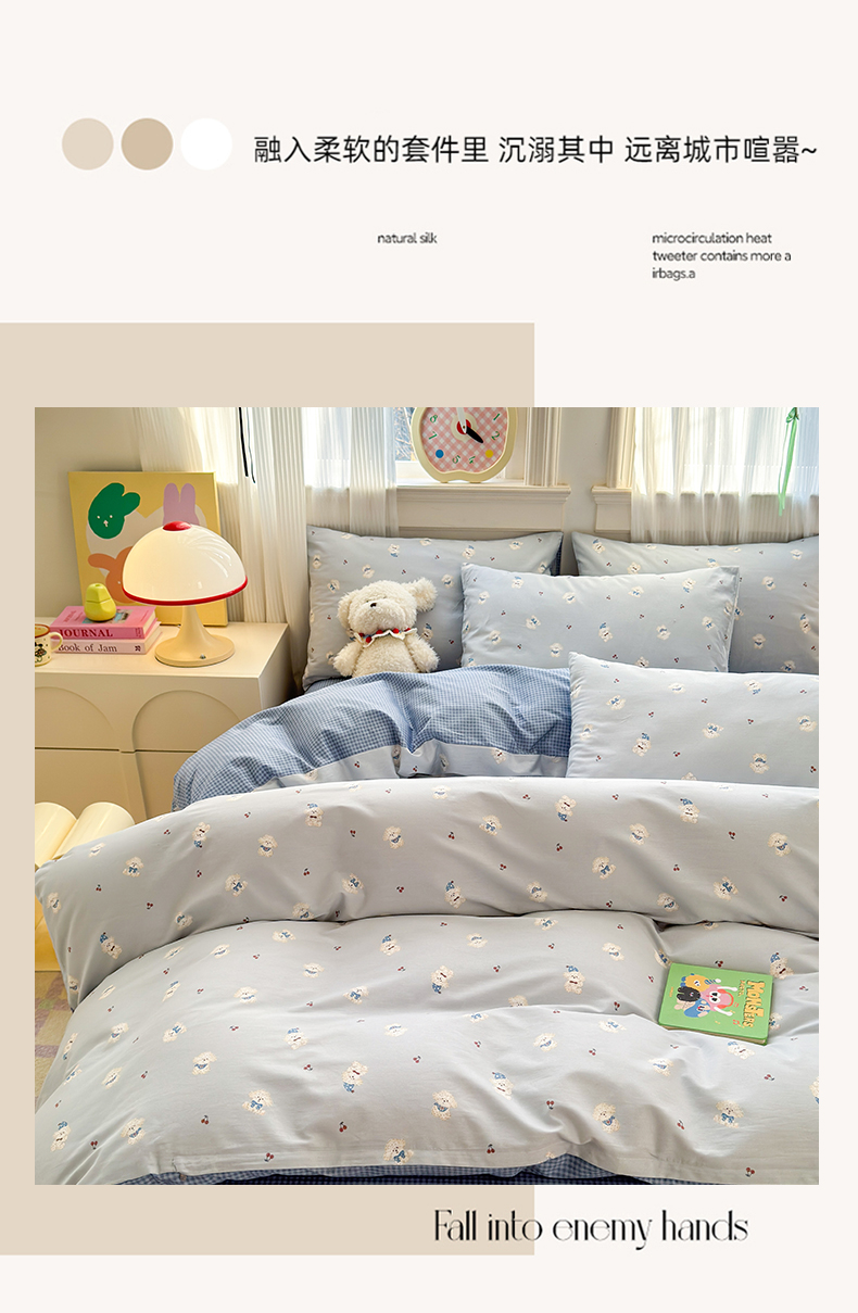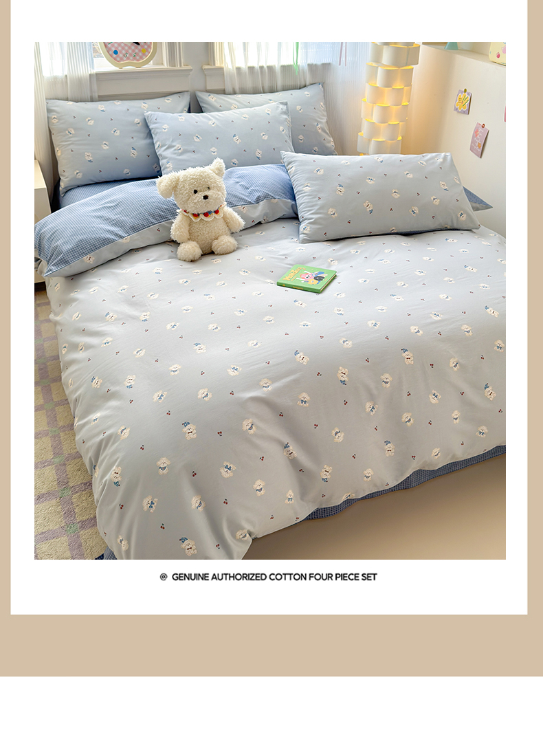 当前位置: 91家纺网 > 商品网购 > 床品套件 > 四件套 > 全棉普通四件套 > 清雅福 2025全棉13372小清新四件套和单被套早春系列第二批--四件套 小狗宝莉·蓝